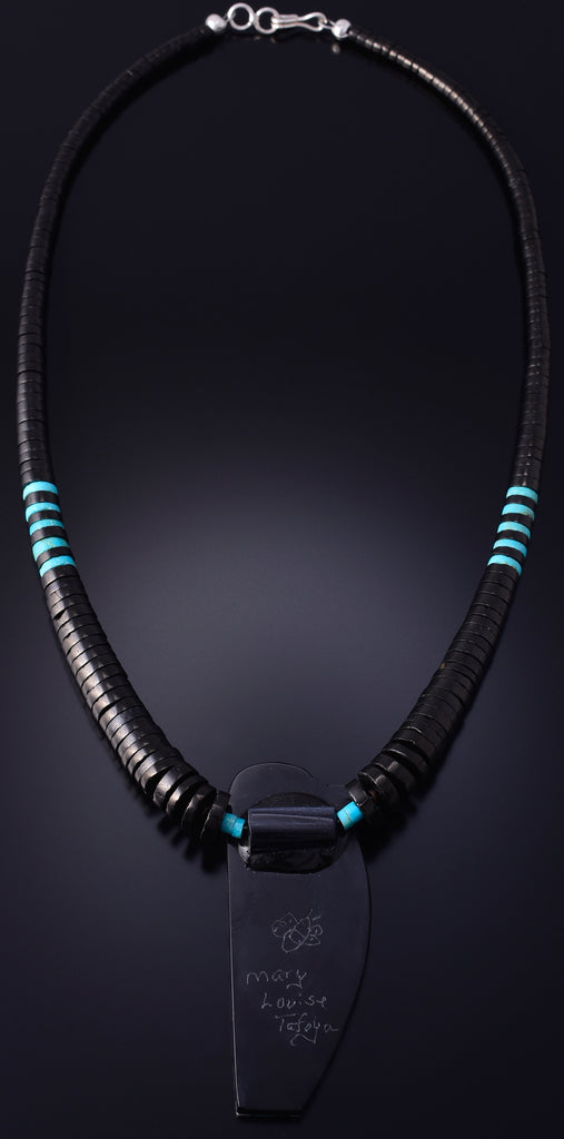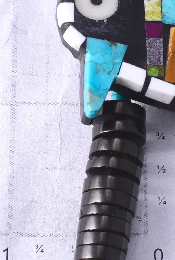 Material: Turquoise, Jet, White Clam Shell, Spiny Oyster Shell, Sugilite, Serpentine, Pipestone, Sterling Silver (Hook & Eye)