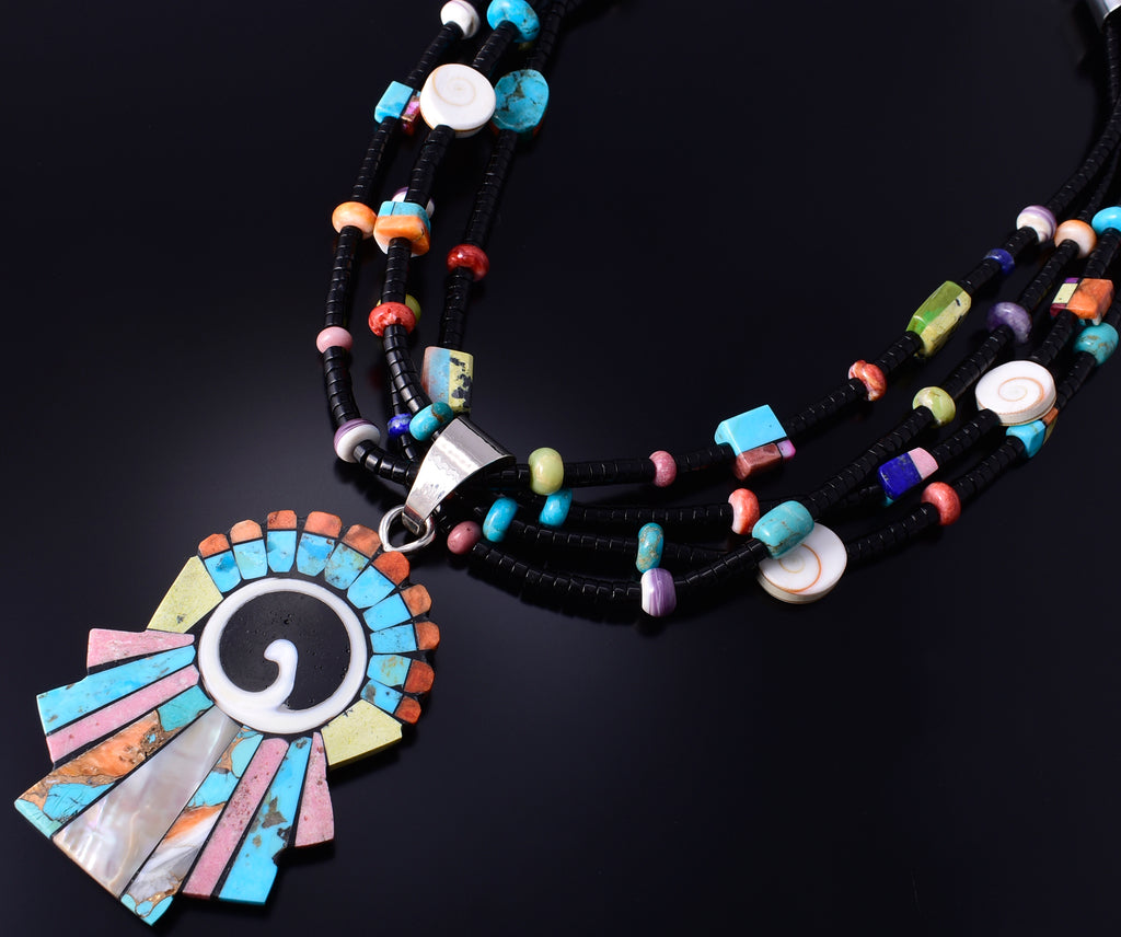 Santo Domingo Pueblo (Kewa) Turquoise Multistone Necklace by Mary Tafoya 5H21W