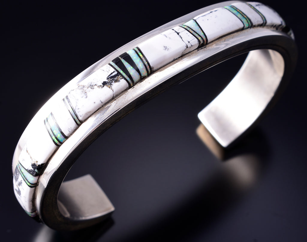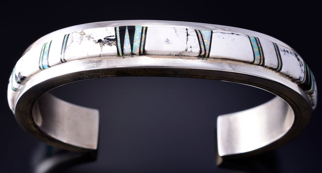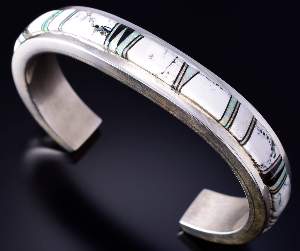 Material: Sterling Silver, White Buffalo Turquoise, Jet, Opal