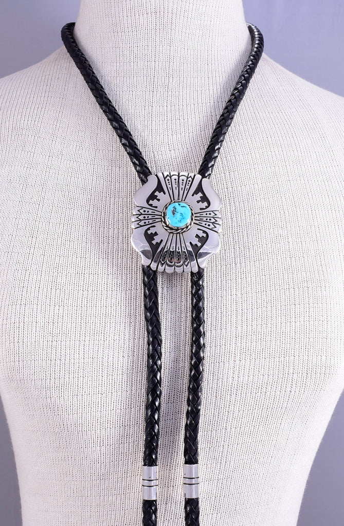 The bolo tie, also known as a bola tie, is a unique necktie typically consisting of a piece of cord or braided leather with decorative metal tips, secured with an ornamental clasp or slide. Its origins can be traced back to the late 1940s and early 1950s in the American Southwest, particularly in the states of Arizona and New Mexico.