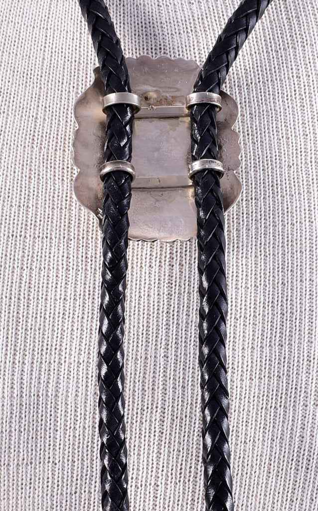 Dimensions: Main bolo pendant is 2" x 2-3/8 ", Bolo tips are 5/16" x 1-7/8", and the bolo cord is 5/16" wide and measures 42 inches and long.