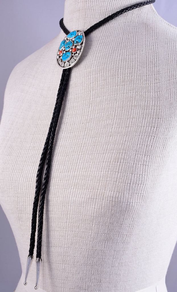 The bolo tie, also known as a bola tie, is a unique necktie typically consisting of a piece of cord or braided leather with decorative metal tips, secured with an ornamental clasp or slide. Its origins can be traced back to the late 1940s and early 1950s in the American Southwest, particularly in the states of Arizona and New Mexico.