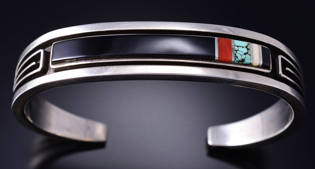 Material: Sterling Silver, Turquoise, Coral, Mother of Pearl, Jet