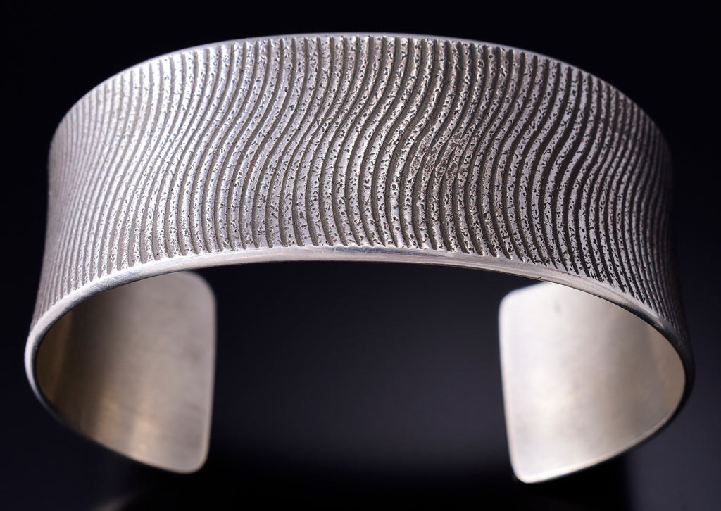 This piece is a stunning example of the artistry of the Navajo silversmith. Each piece is handmade out of sterling silver.