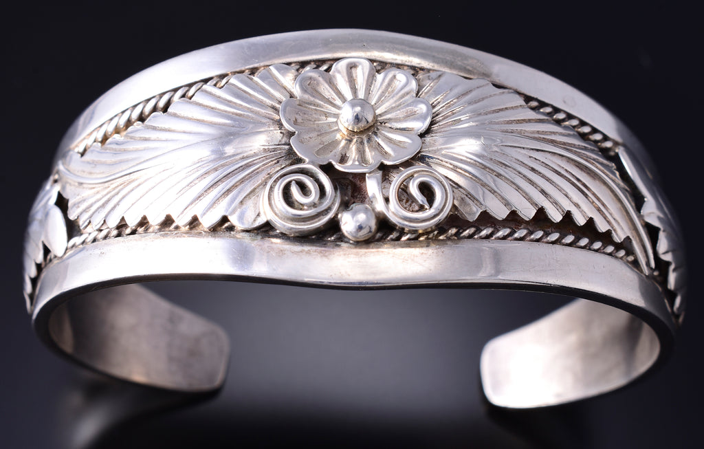 This piece is a stunning example of the artistry of the Navajo silversmith. Each piece is handmade out of sterling silver.