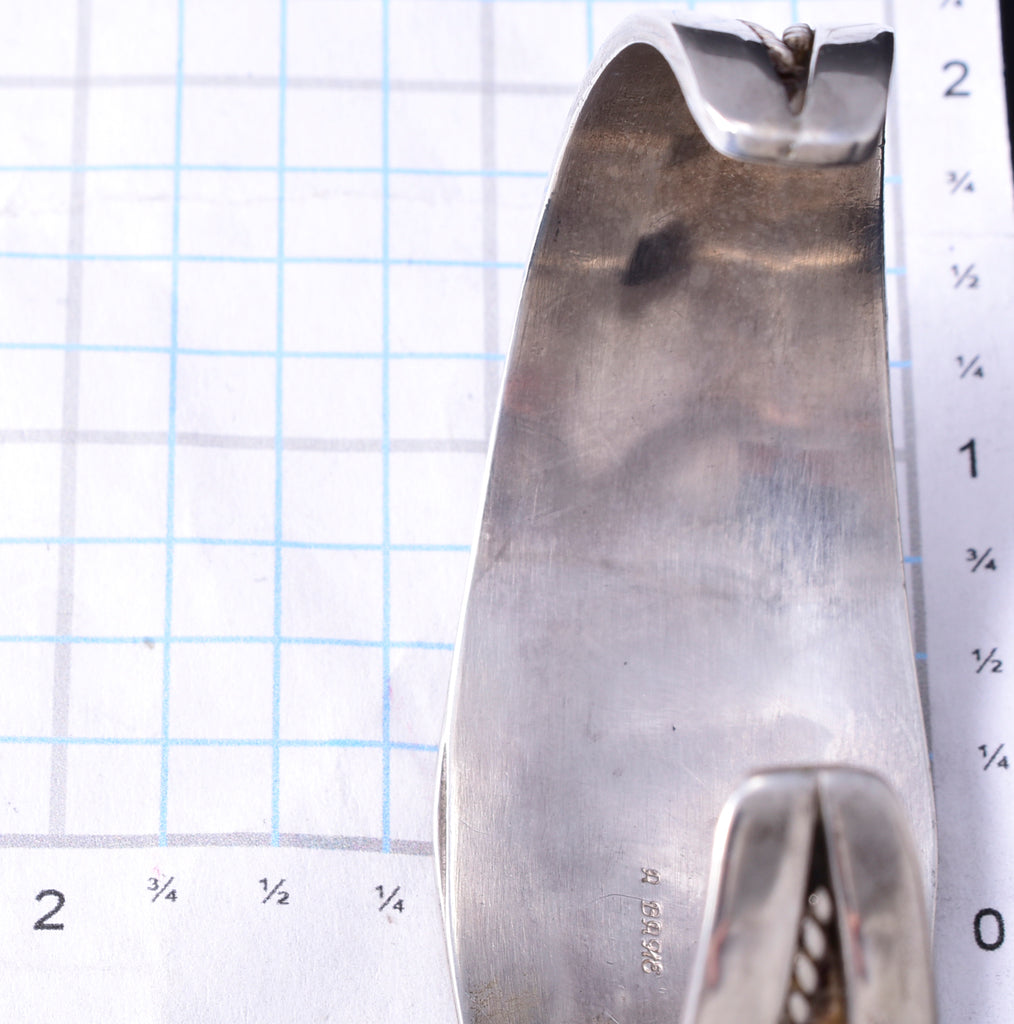 Dimensions: The inside of this bracelet measures 5-5/8" from end to end. The opening is 1-1/4" and the piece is 1-1/8" wide.