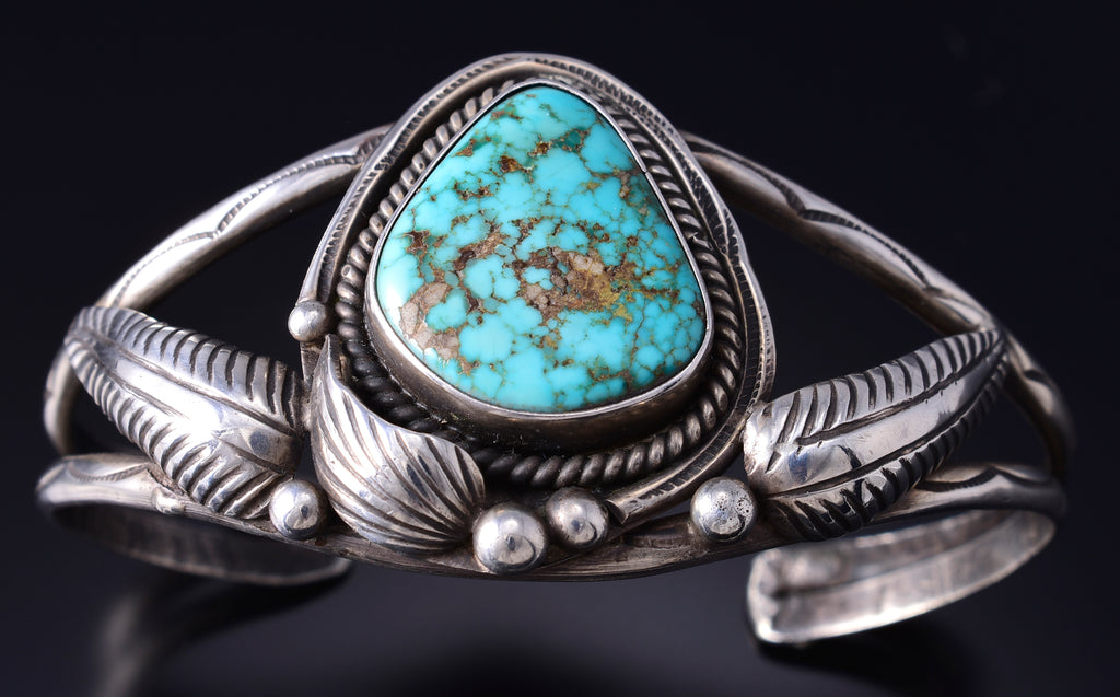 Vintage Silver & Turquoise Eagle Feathers Navajo Bracelet 6A03S