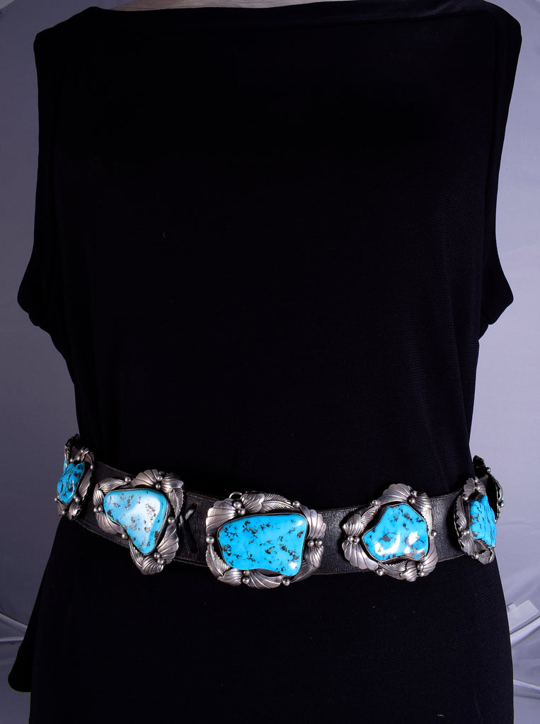 This piece is very nice, as natural large Sleeping Beauty Turquoise are no longer obtainable. We checked each stone and there are no cracks or chips. It is great condition.