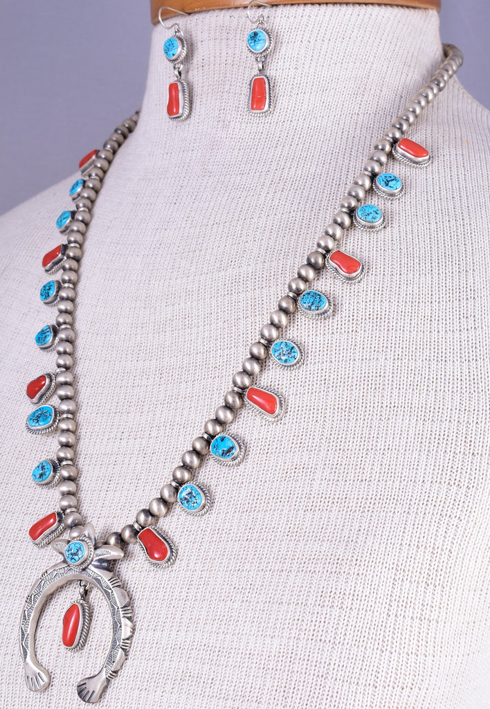 This piece is a stunning example of classic Navajo jewelry. This piece is handmade out of sterling silver and genuine stones.