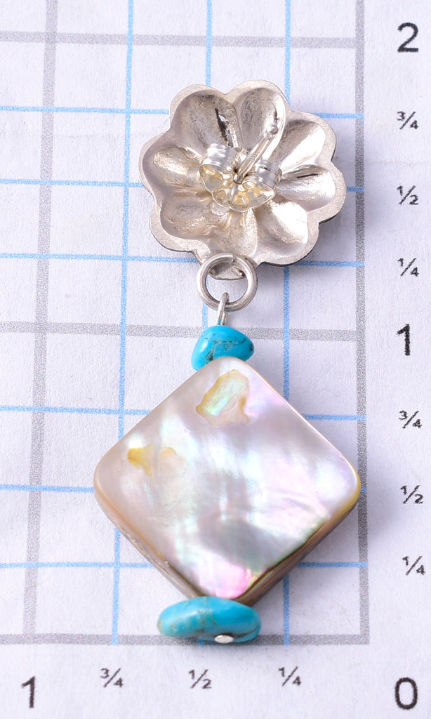 Material: Sterling Silver, Turquoise, Abalone Dimensions: 7/8" x 1-7/8" Weight (in grams): 7.2 Hallmark/Signature: N/A This piece is a stunning example of classic Navajo jewelry. This piece is handmade out of sterling silver and genuine stones.