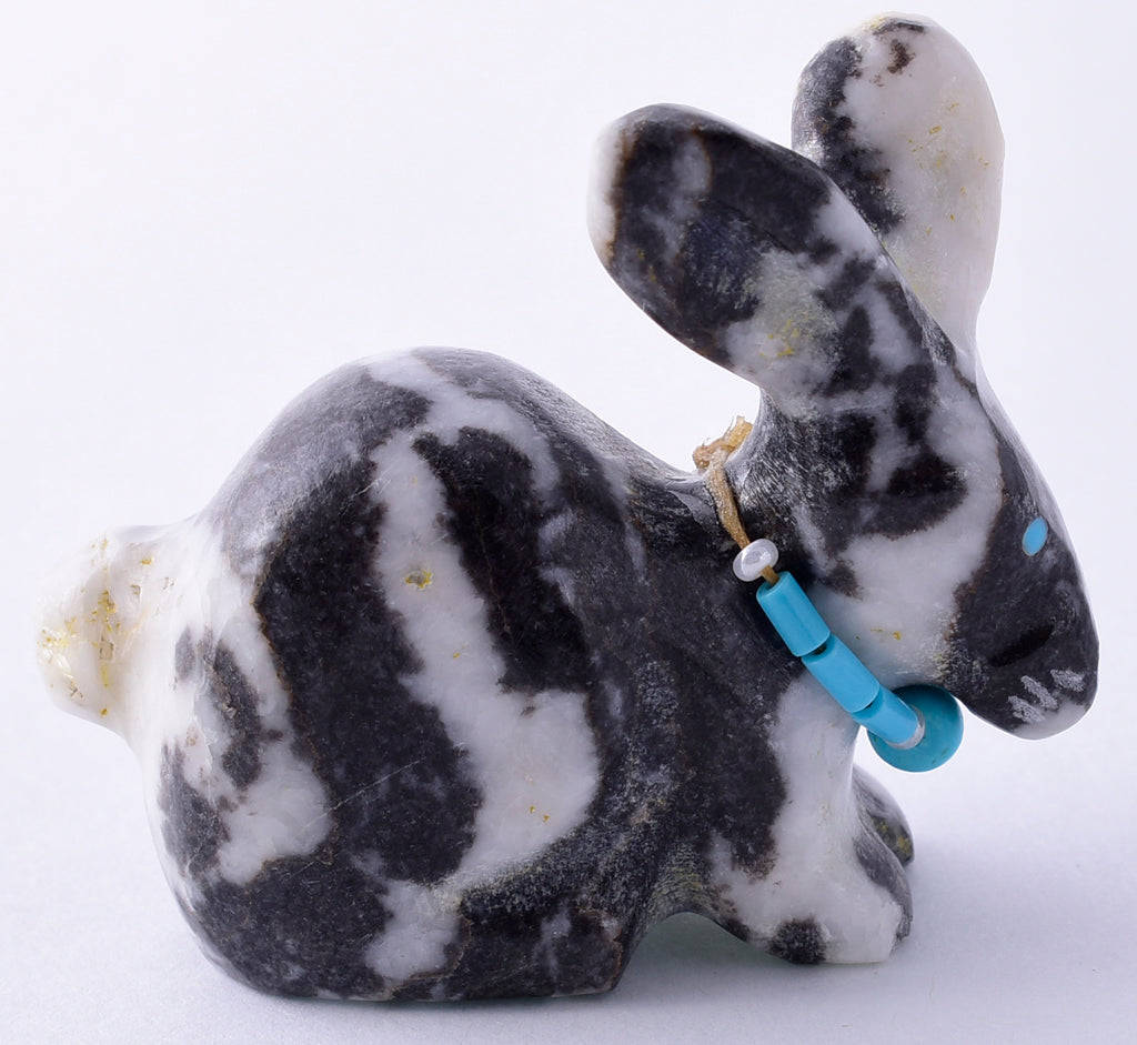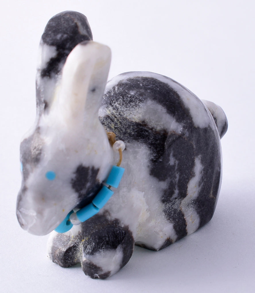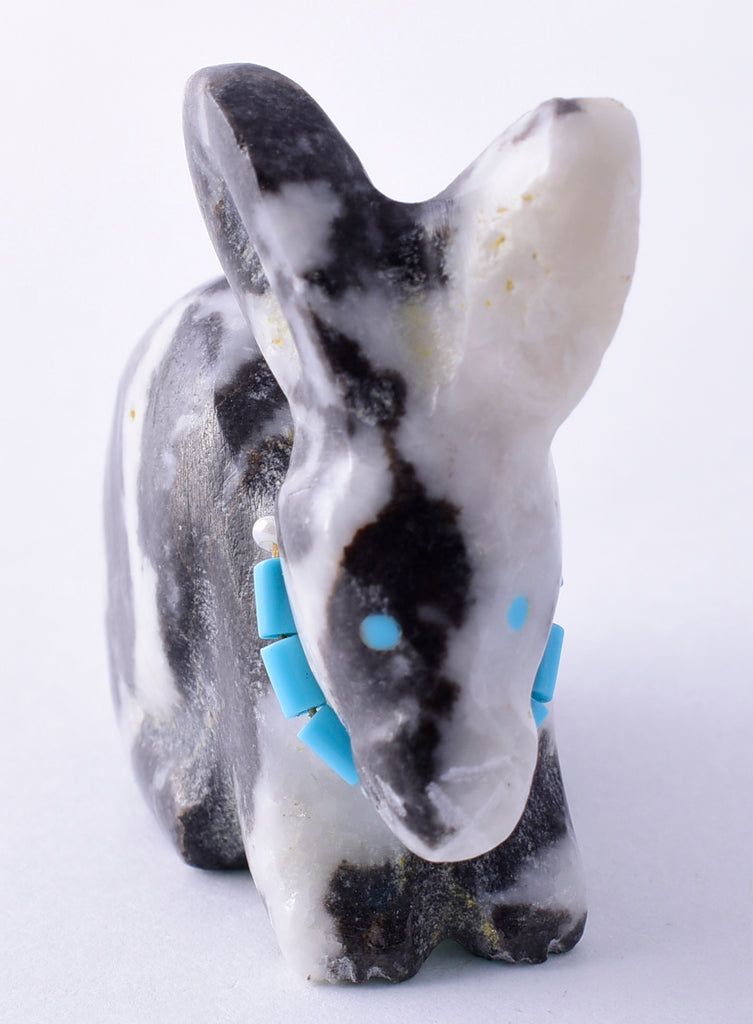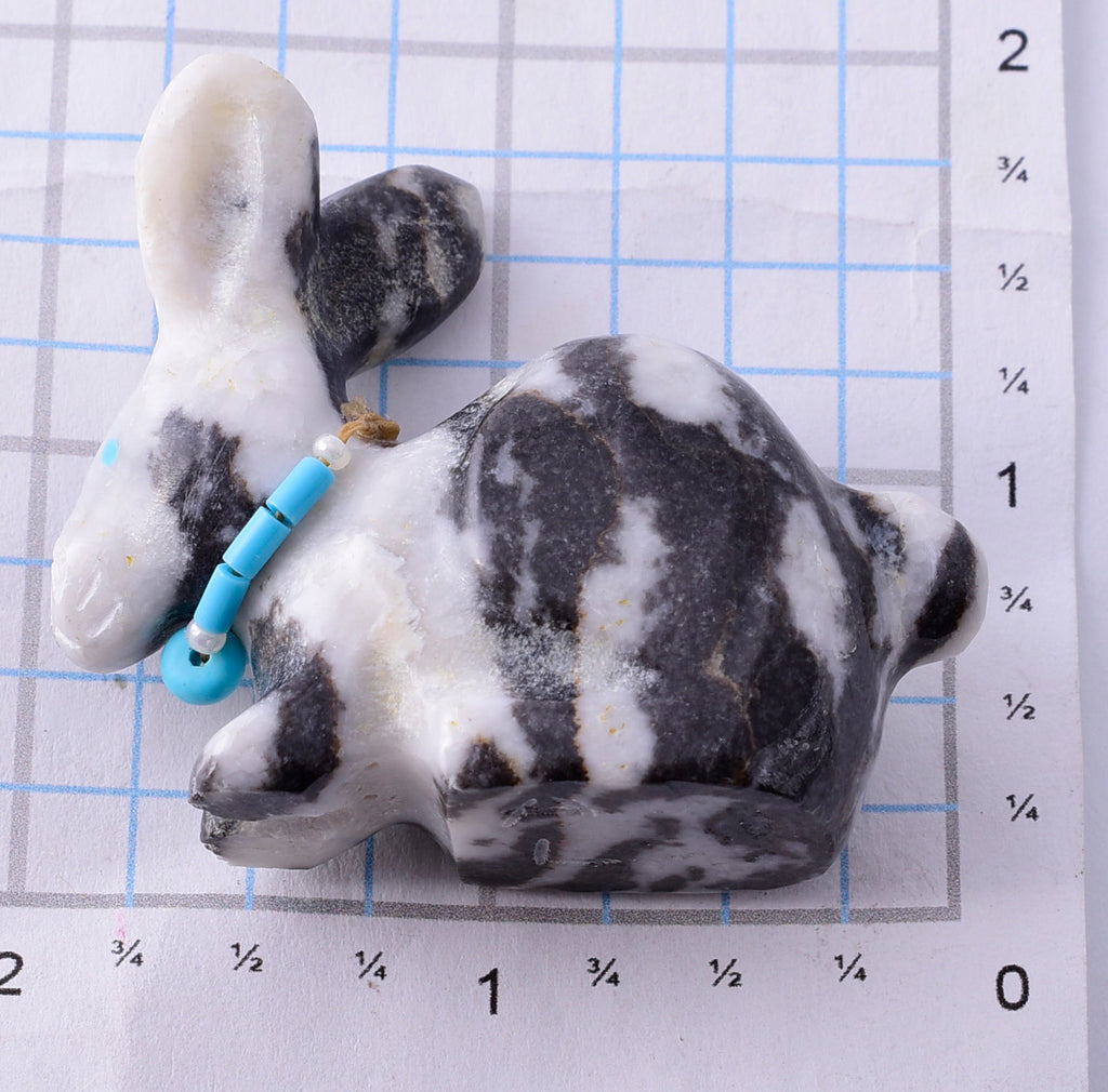 White and Black Marble Zuni Fetish - Rabbit by Alvert Lamy 5L09F