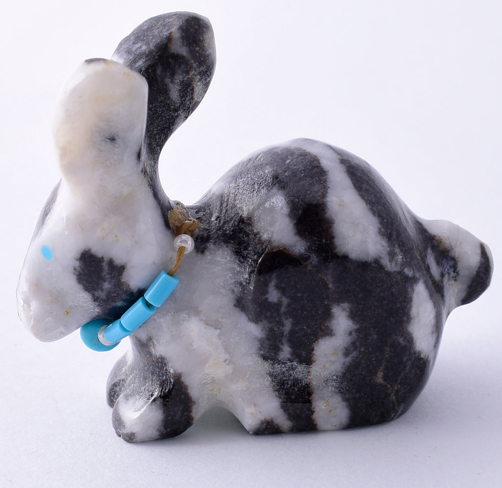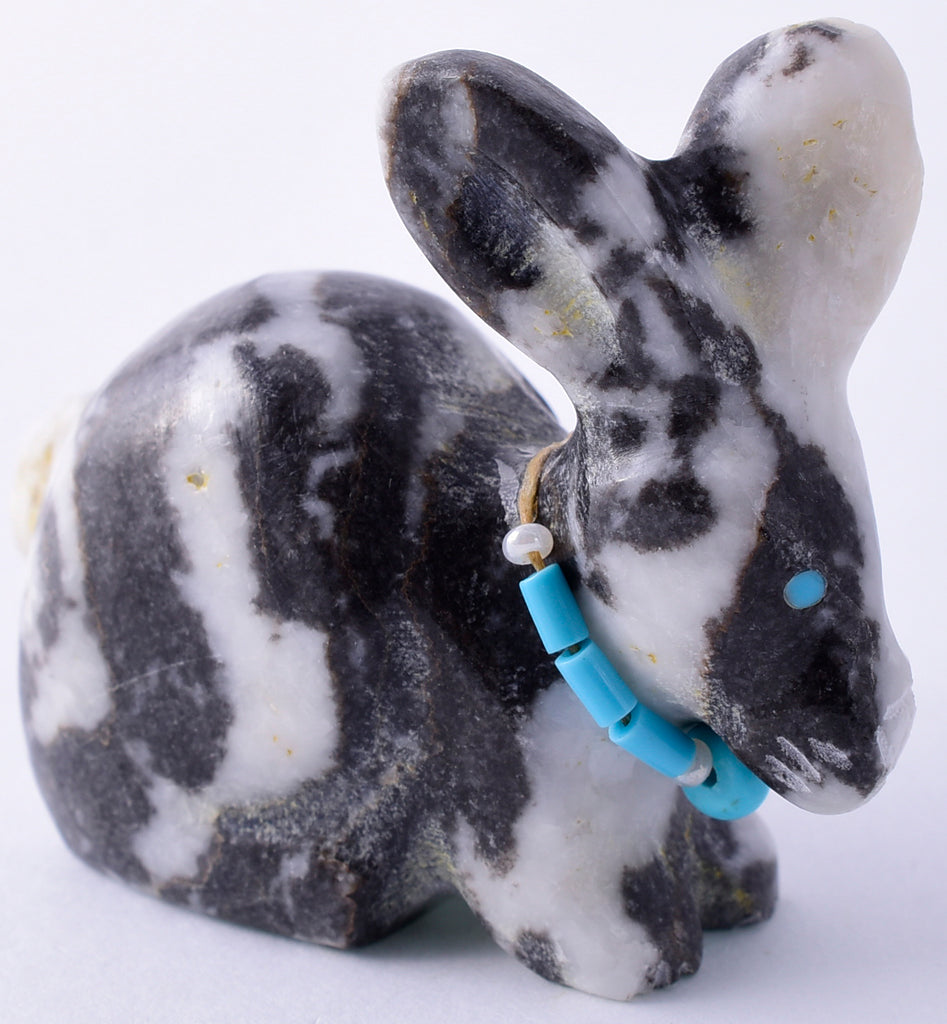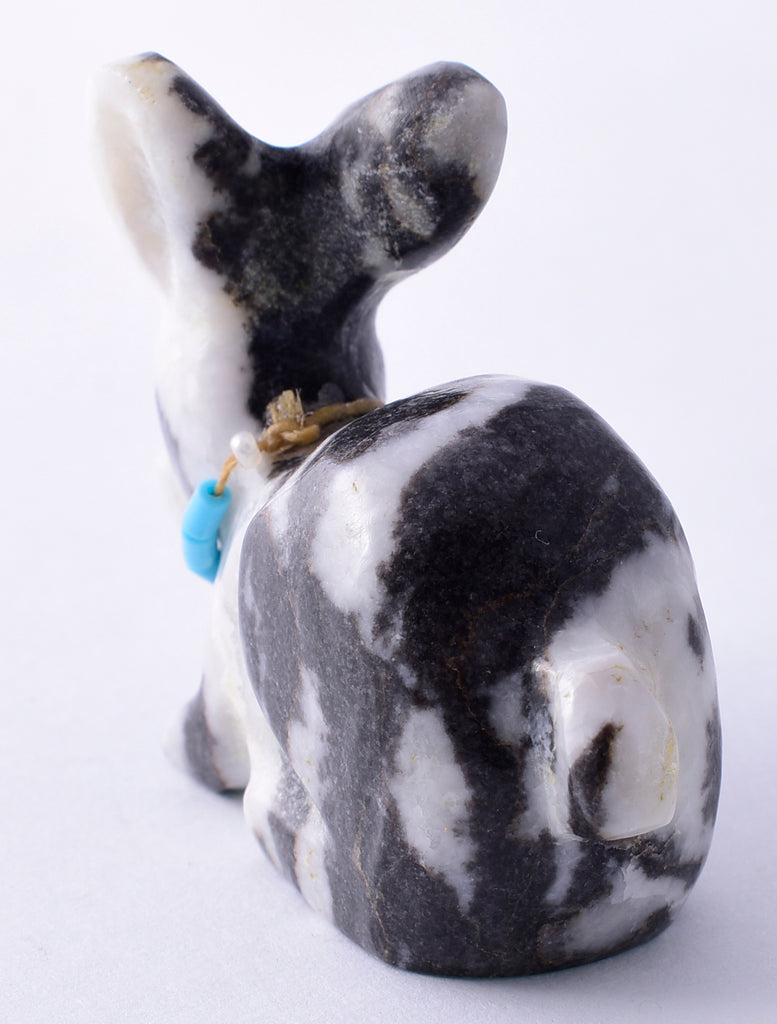 White and Black Marble Zuni Fetish - Rabbit by Alvert Lamy 5L09F