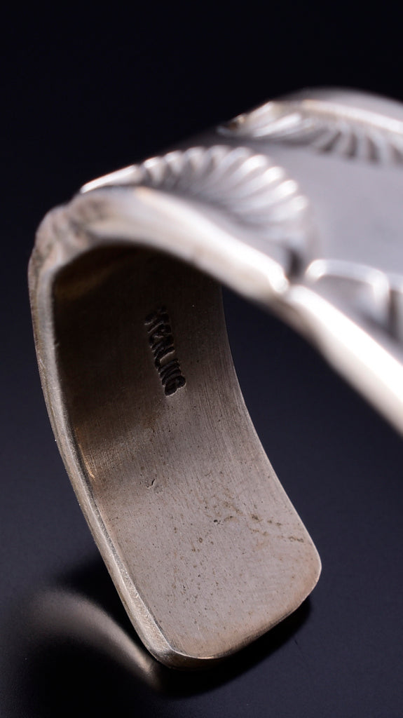 This piece is a stunning example of classic Navajo jewelry. This piece is handmade out of sterling silver.