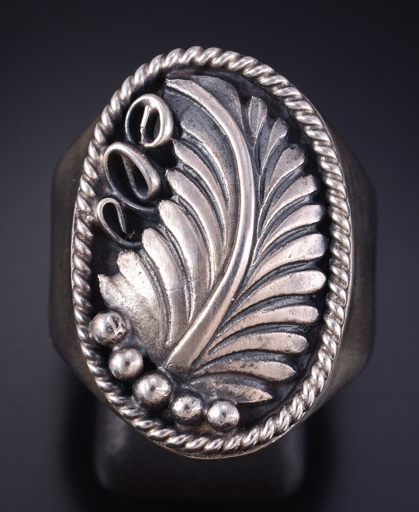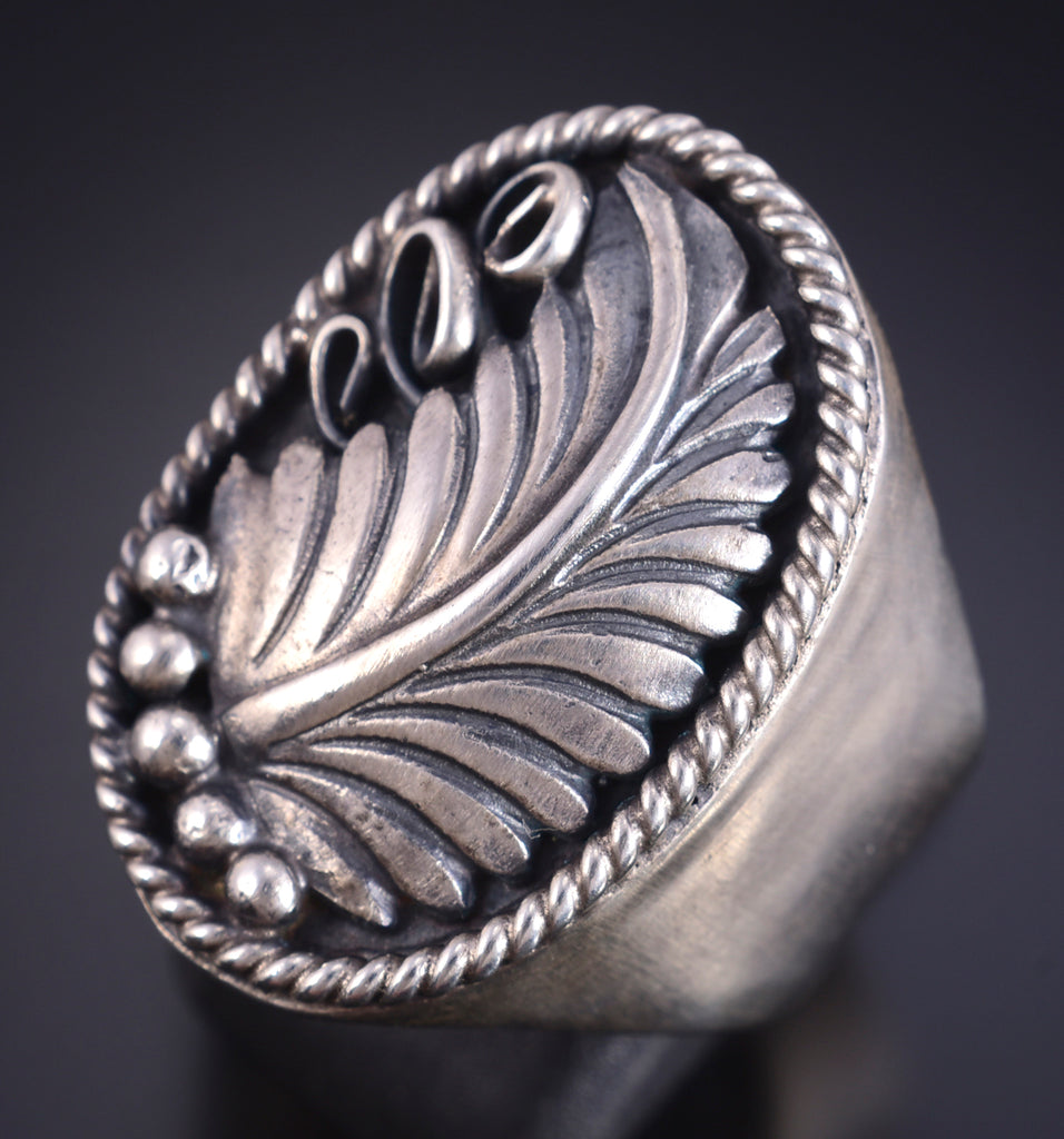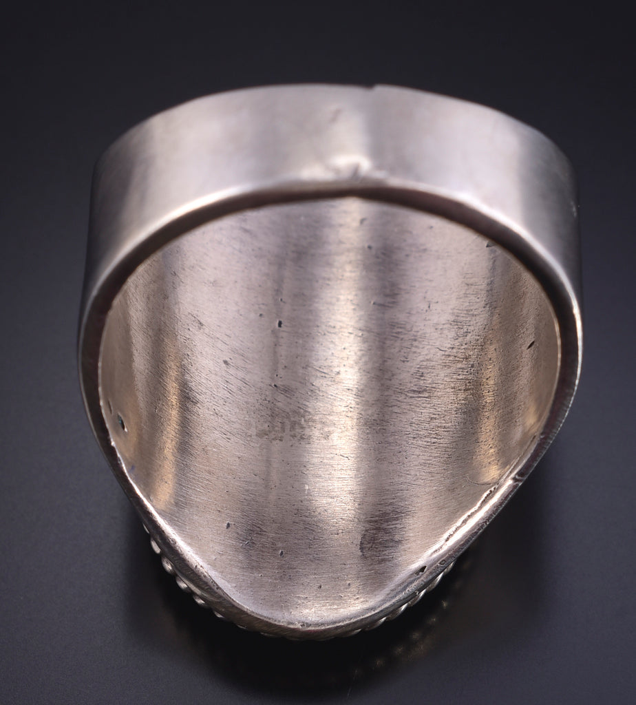 Material: Sterling Silver Dimensions: Size 10-1/2. Ring's face is 1-1/8" long. Weight (in grams): 20.8 Hallmark/Signature: N/A This piece is a stunning example of the artistry of the Navajo silversmith. Each piece is handmade out of sterling silver.