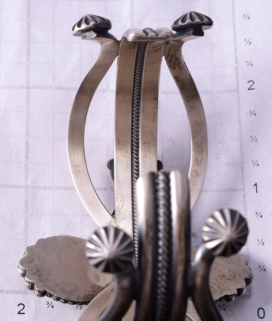 This piece is a stunning example of classic Navajo jewelry. This piece is handmade out of sterling silver and genuine stones.