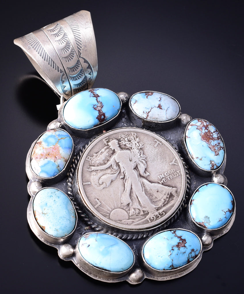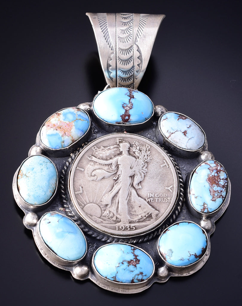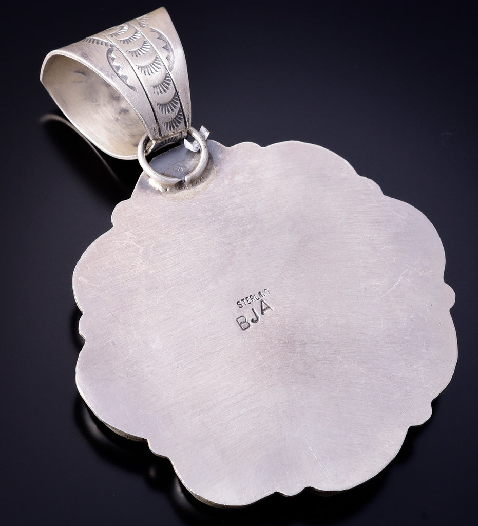This piece is a stunning example of classic Navajo jewelry. This piece is handmade out of sterling silver and genuine stones.