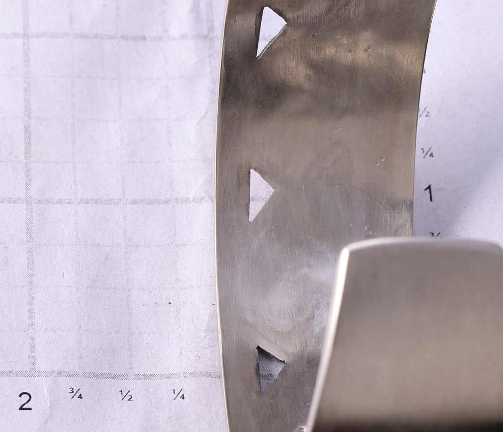 Dimensions: The inside of this bracelet measures 6-3/4" from end to end. The opening is 1-1/4" and the piece is 1" wide.
