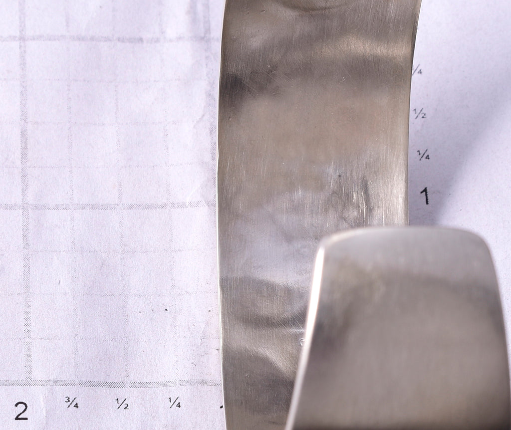 Dimensions: The inside of this bracelet measures 6-3/4" from end to end. The opening is 1-1/4" and the piece is 1" wide.