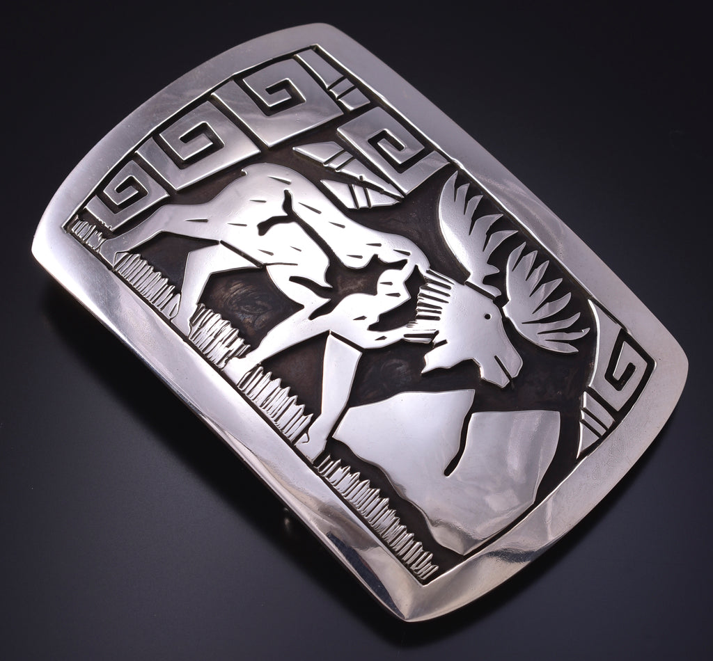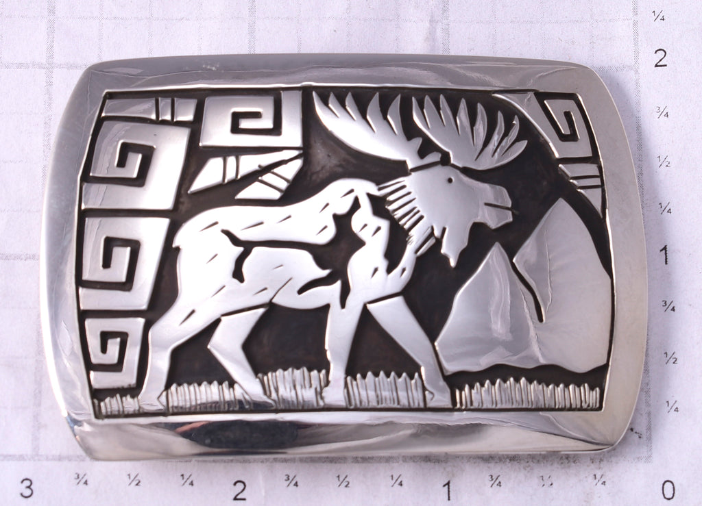 Material: Sterling Silver Dimensions: 2" x 3" Weight (in grams): 43 Hallmark/Signature: Sterling This piece is a stunning example of the artistry of the Navajo silversmith. Each piece is handmade out of sterling silver.
