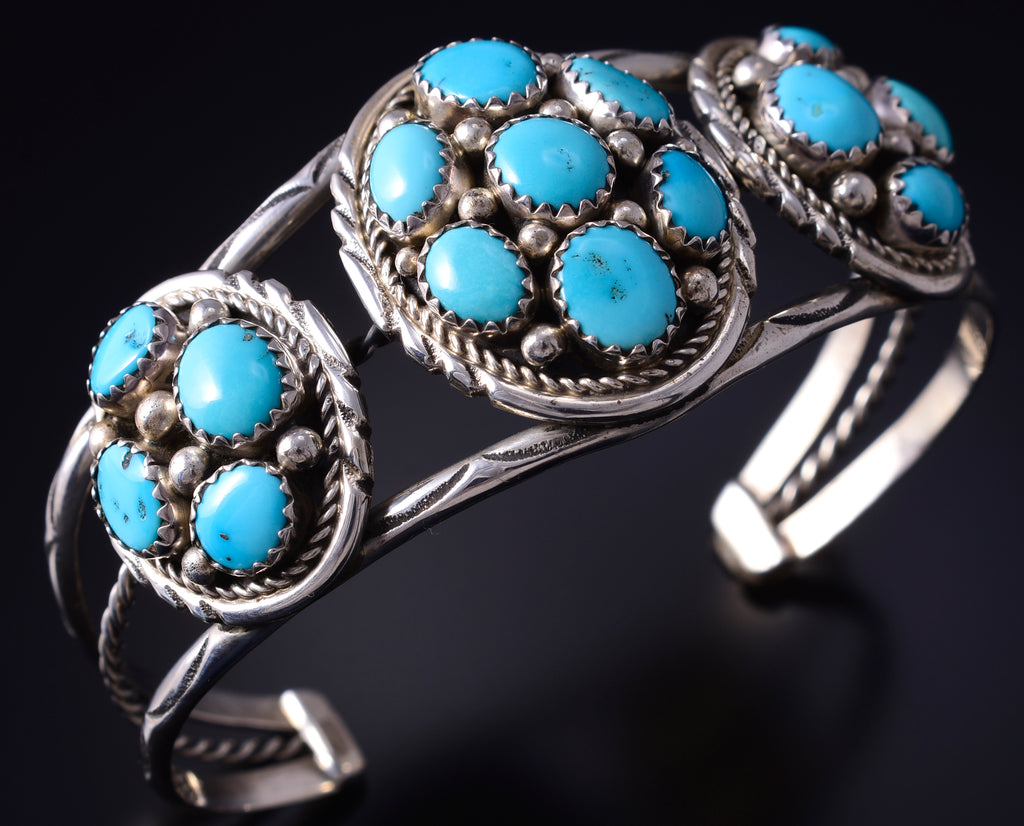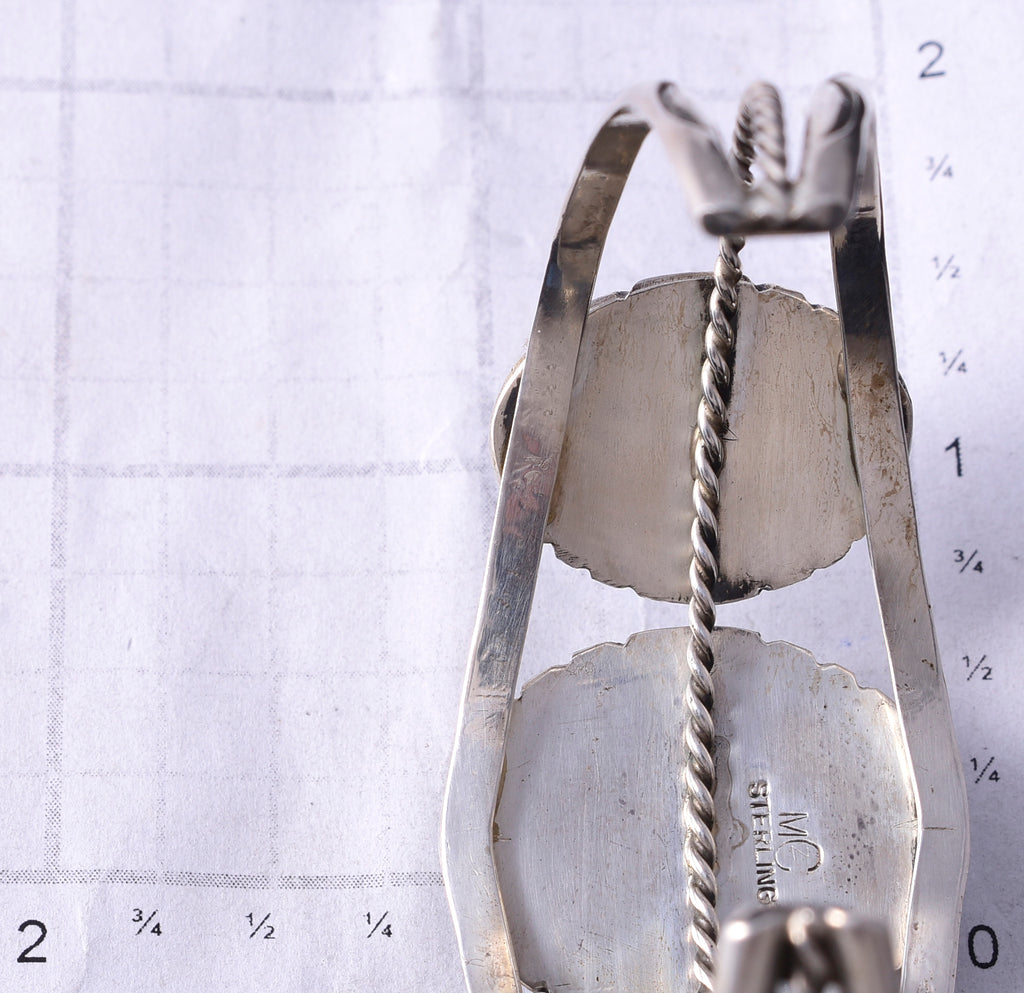 This piece is a stunning example of classic Navajo jewelry. This piece is handmade out of sterling silver and genuine stones.