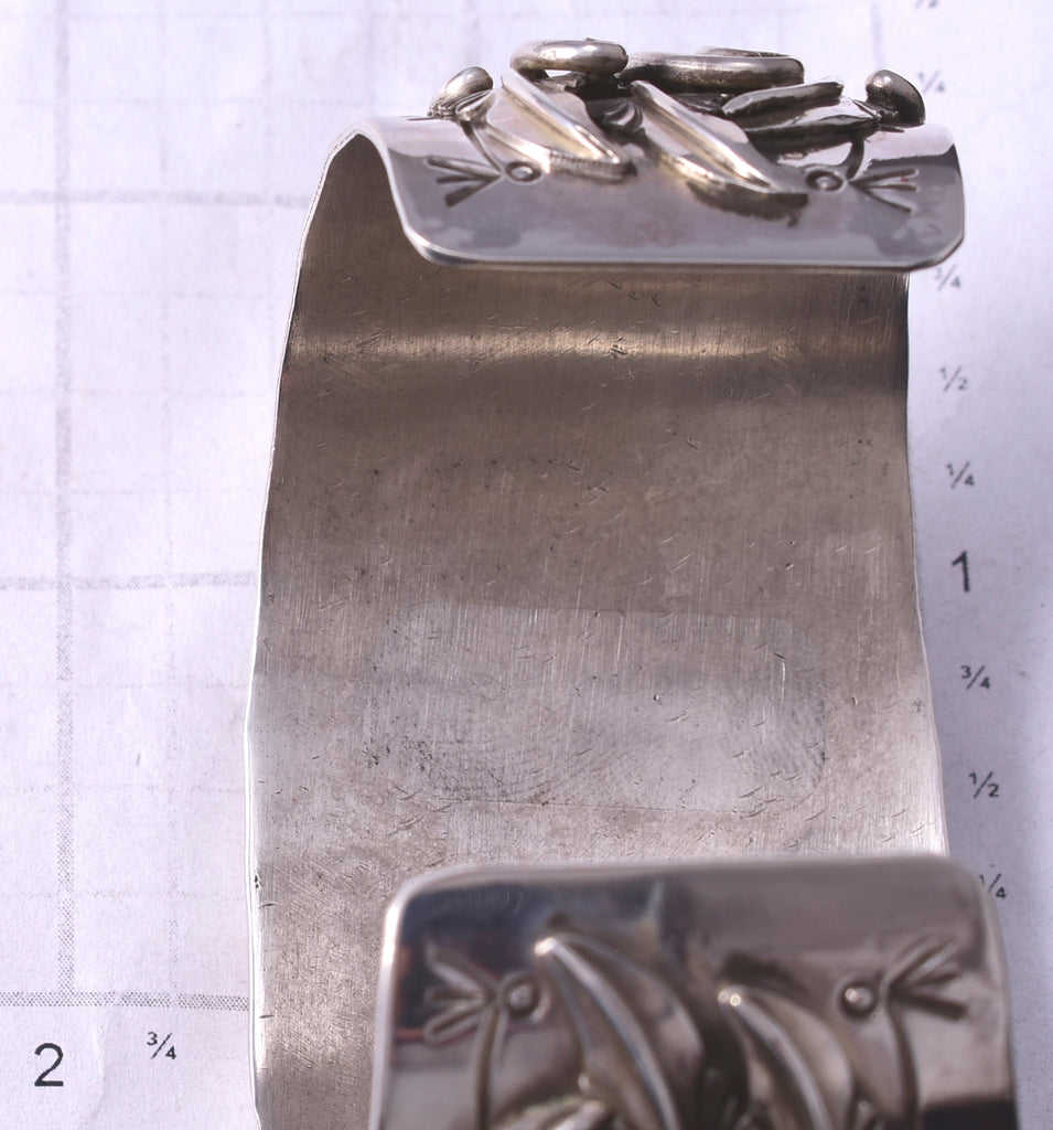 Dimensions: The inside of this bracelet measures 5-7/8" from end to end. The opening is 1-1/4" and the piece is 1-5/8" wide.