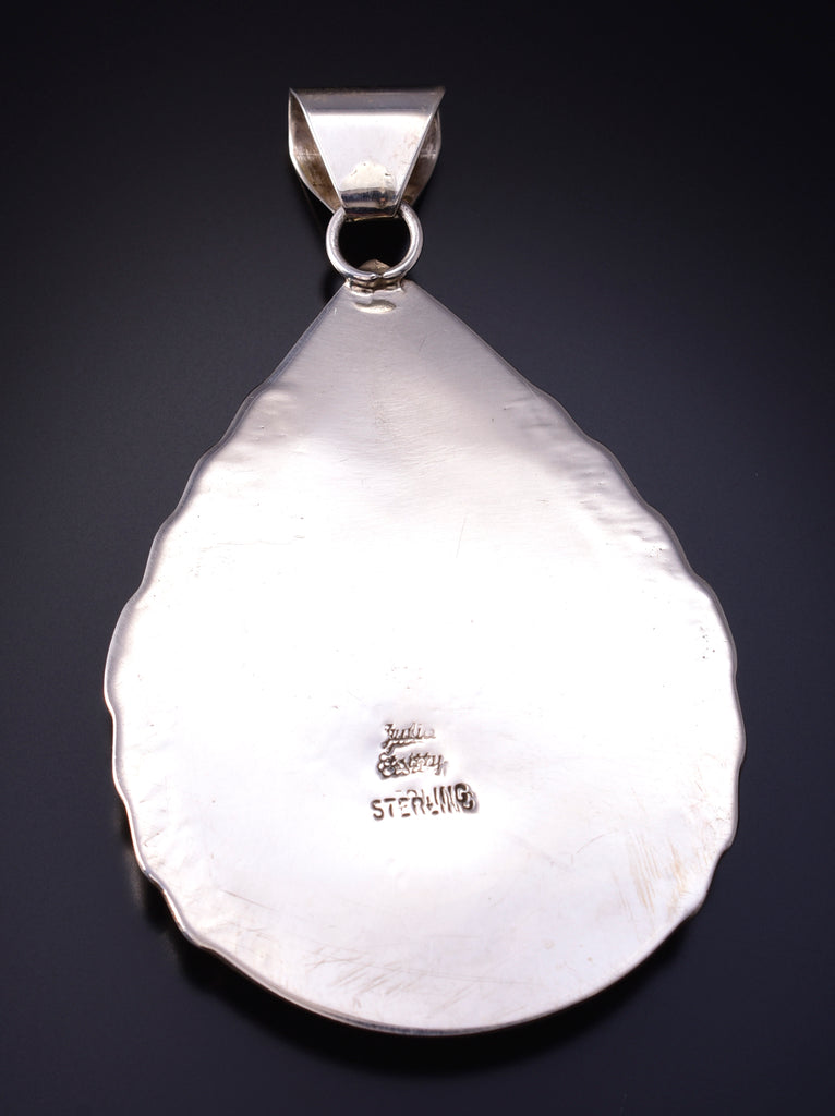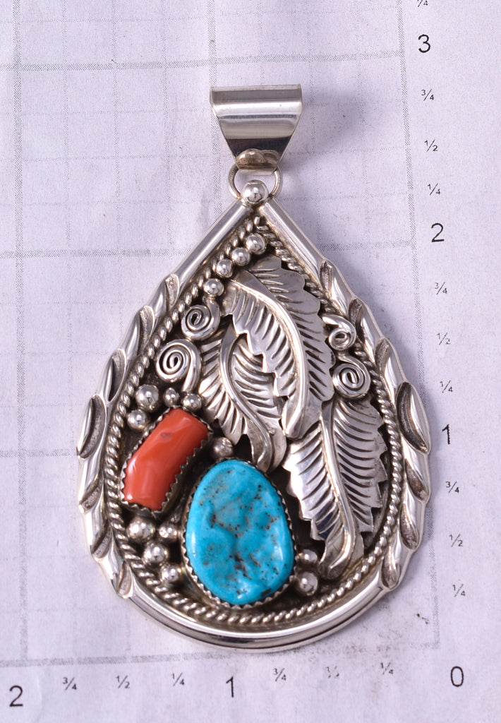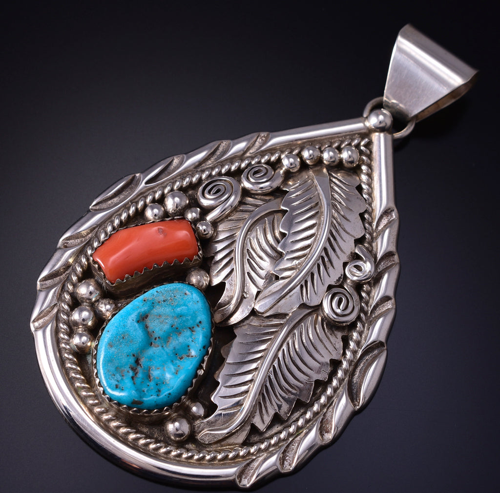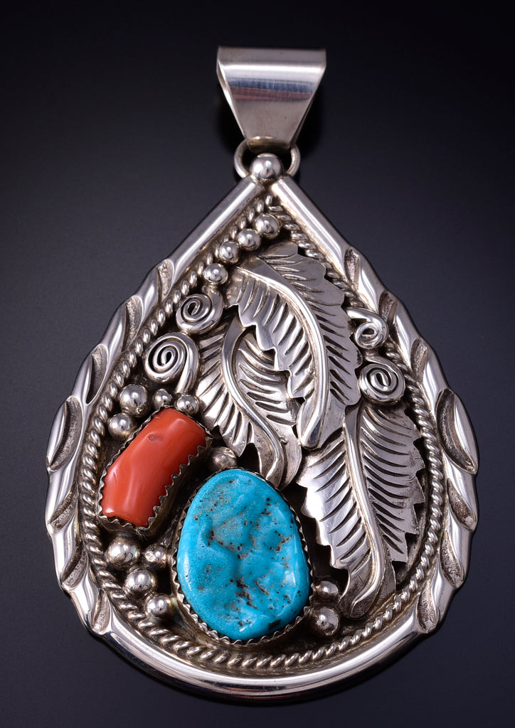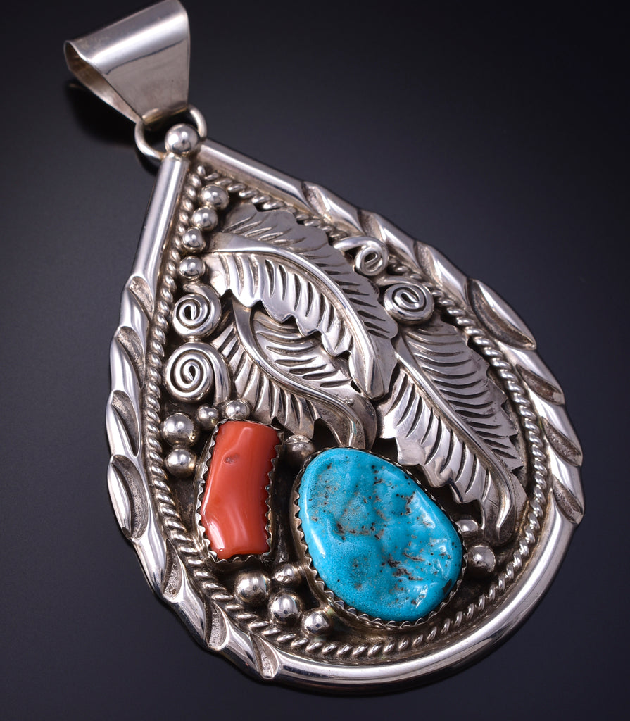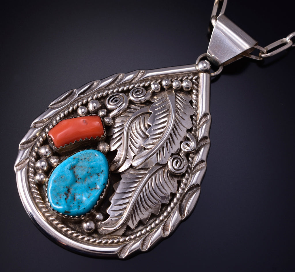 This piece is a stunning example of classic Navajo jewelry. This piece is handmade out of sterling silver and genuine stones.