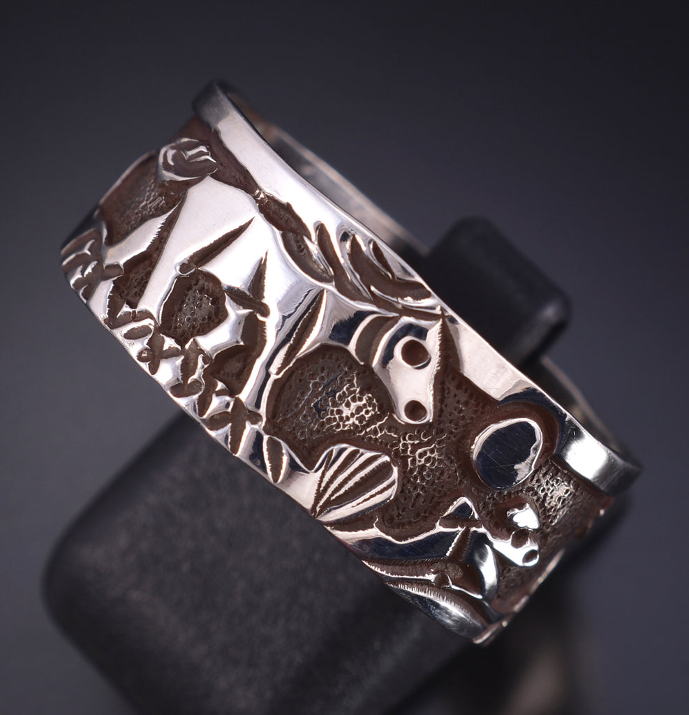 Material: Sterling Silver Dimensions: Size 12. Ringband is 3/8" wide. Weight (in grams): 5.7 Hallmark/Signature: LBCT, Sterling This piece is a stunning example of the artistry of the Navajo silversmith. Each piece is handmade out of sterling silver.