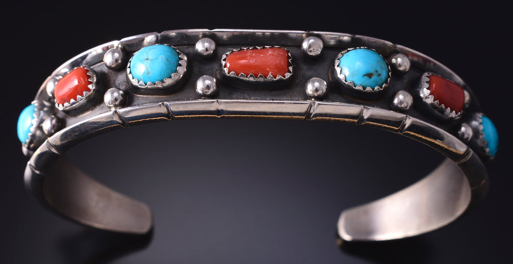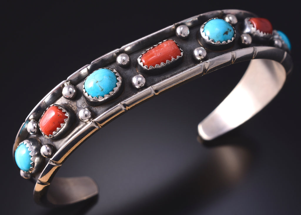 Sterling & Turquoise Coral Navajo Handmade Bracelet by Reed Charley 5J18S