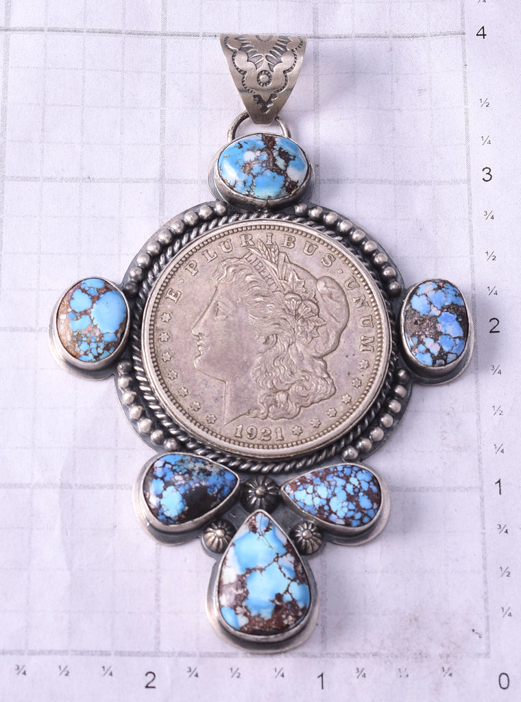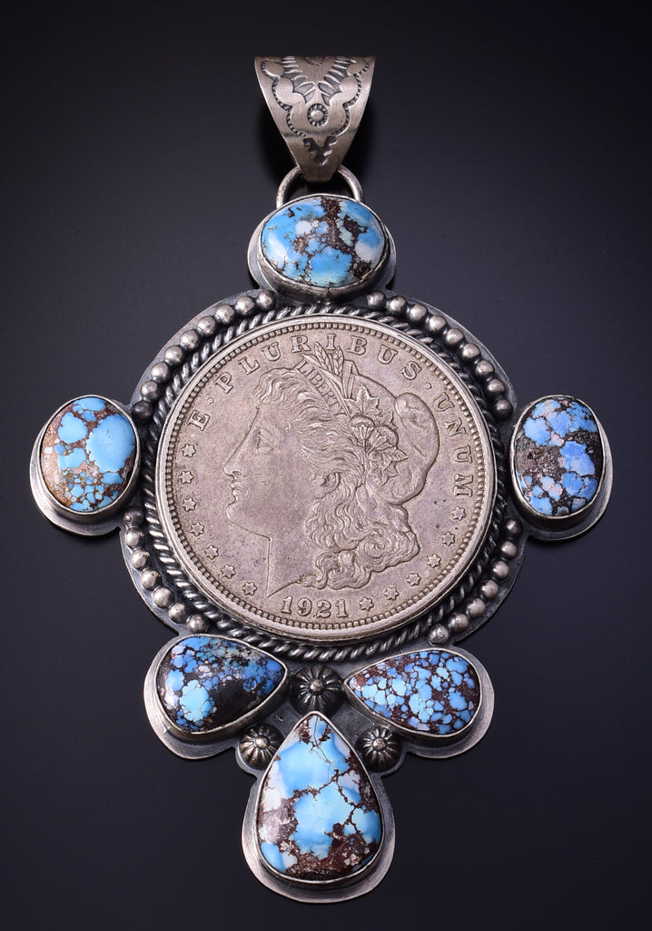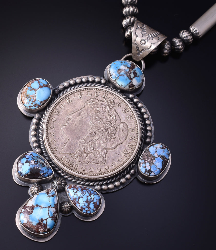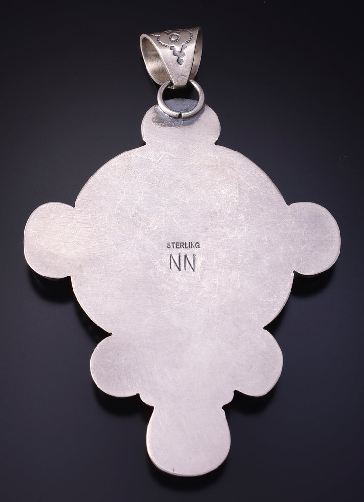 This piece is a stunning example of classic Navajo jewelry. This piece is handmade out of sterling silver and genuine stones.
