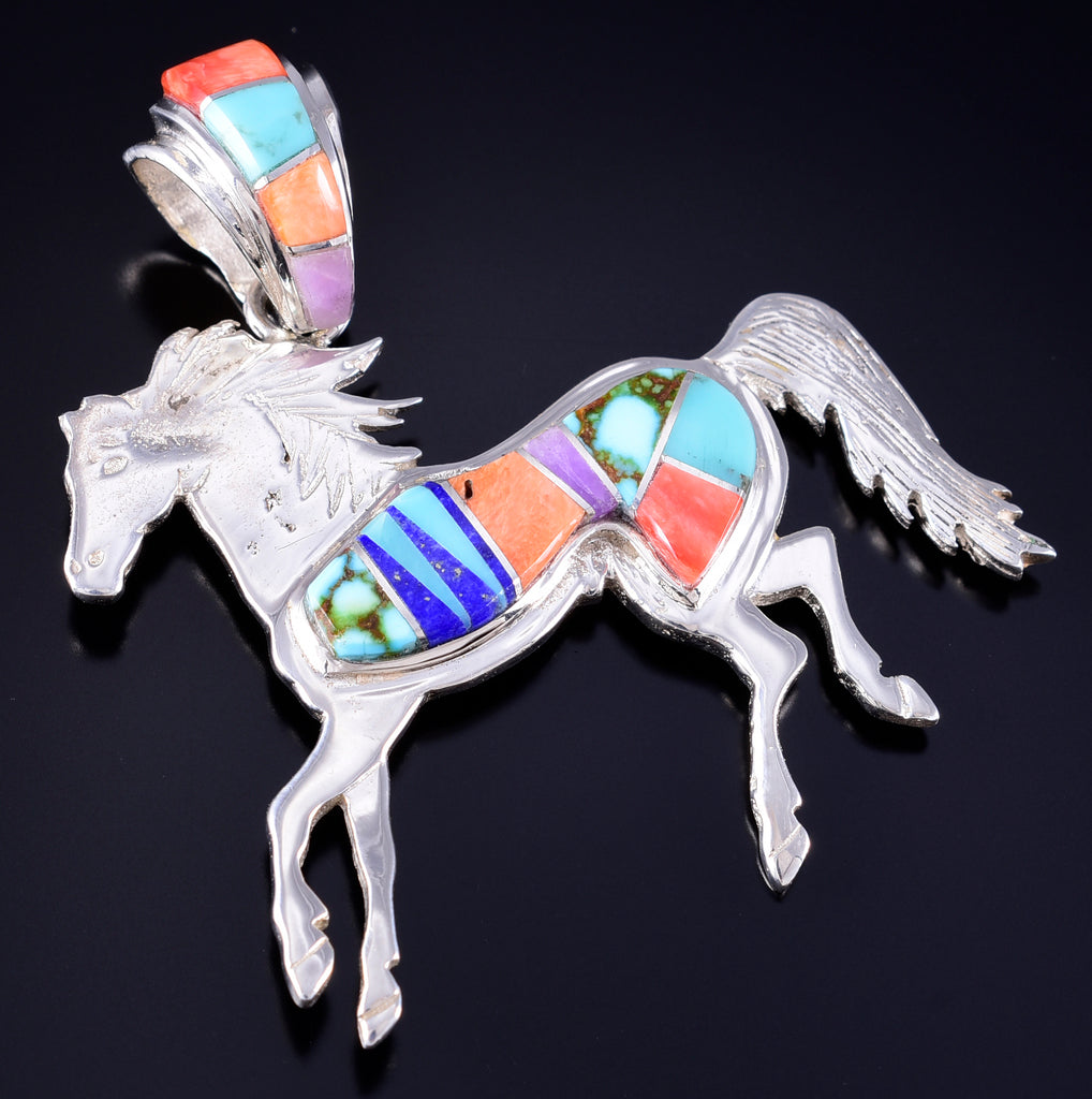 Silver Multistone Navajo Inlay Freedom Horse Pendant by Aldora Henry 5L20T