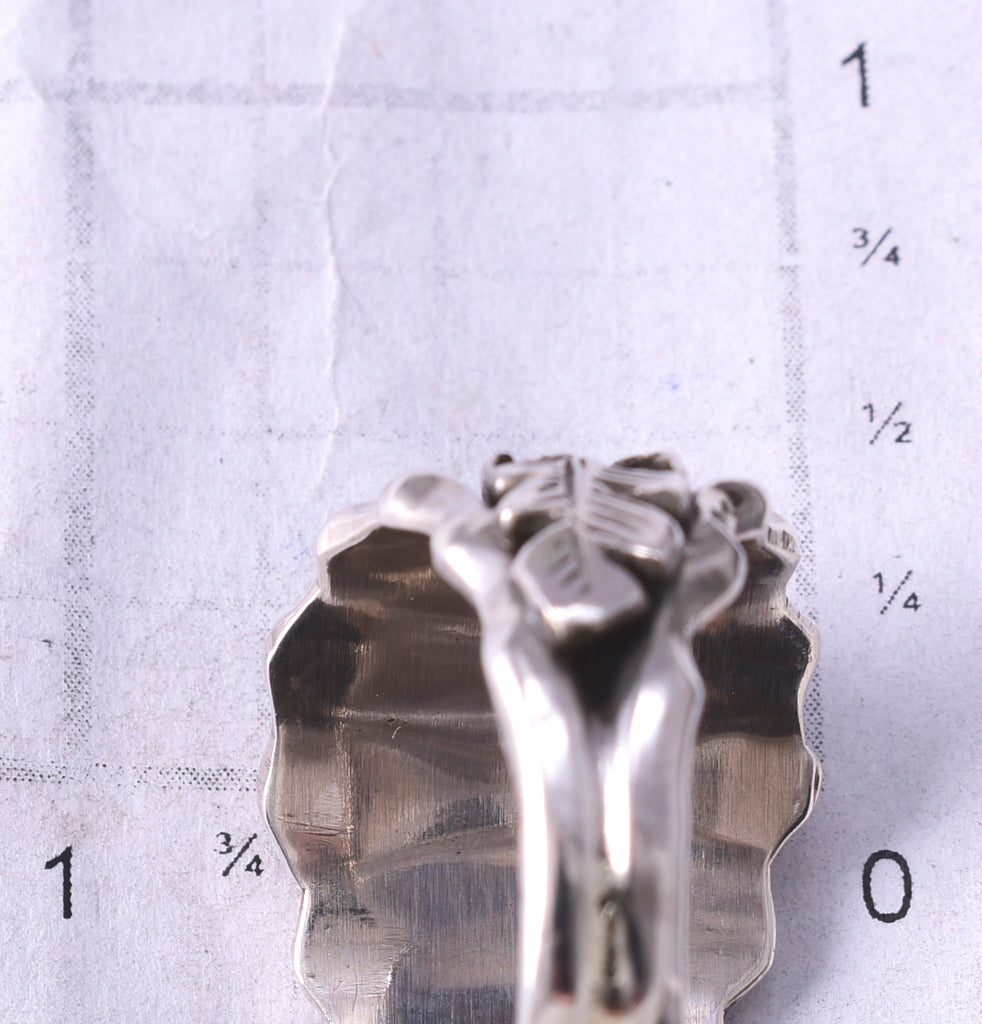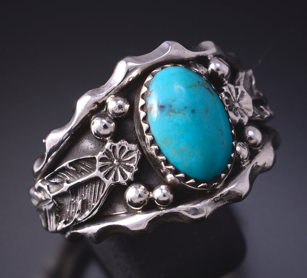 Material: Sterling Silver, Turquoise Dimensions: Size 12-3/4. Ring's face is 3/4" wide. Weight (in grams): 10.5 Hallmark/Signature: RB, .925 This piece is a stunning example of classic Navajo jewelry. This piece is handmade out of sterling silver and genuine stones.