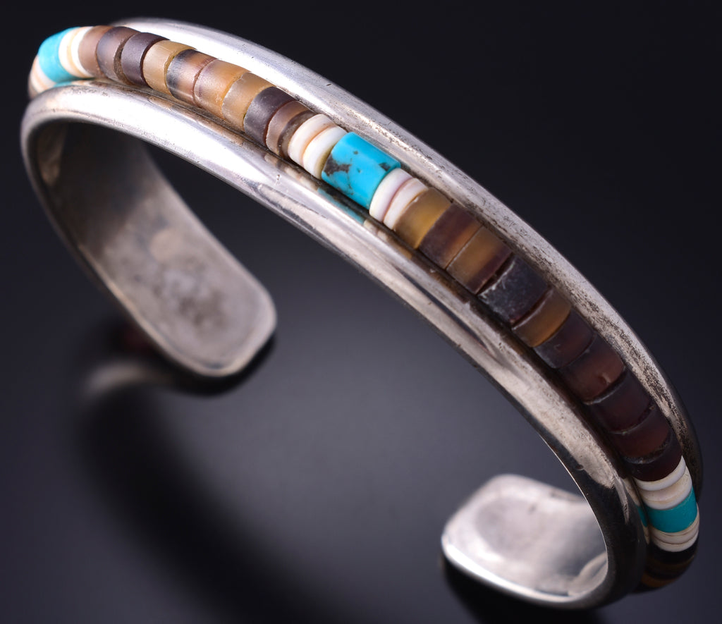 Material: Sterling Silver, Turquoise, White Clam Shell, Olive Shell