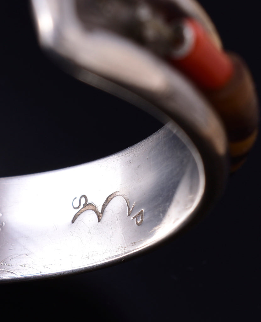 This piece is a stunning example of classic Navajo jewelry. This piece is handmade out of sterling silver and genuine stones.