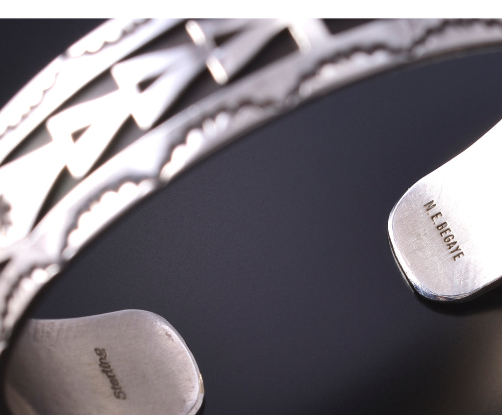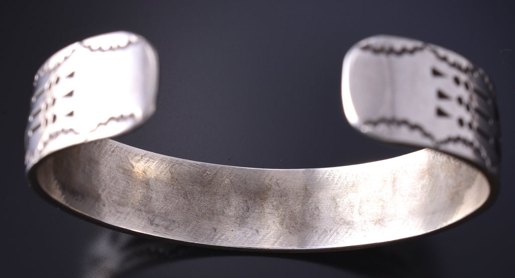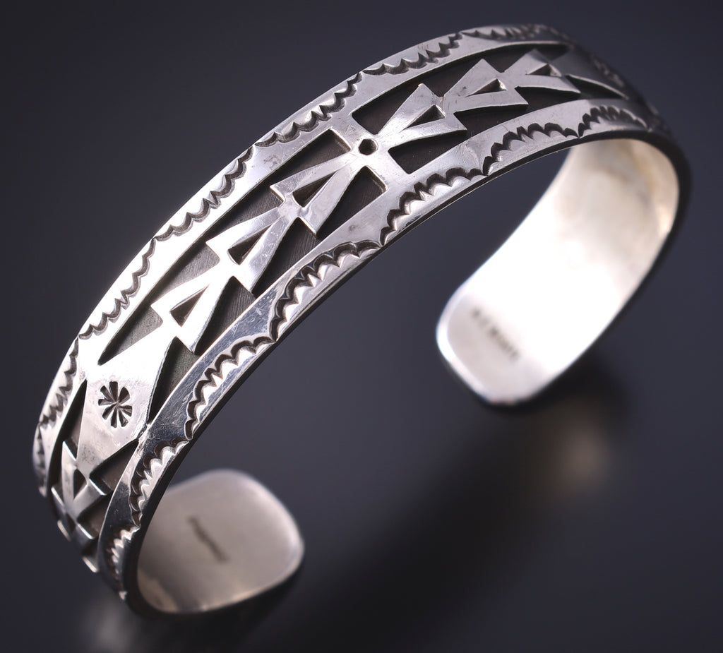 This piece is a stunning example of the artistry of the Navajo silversmith. Each piece is handmade out of sterling silver.