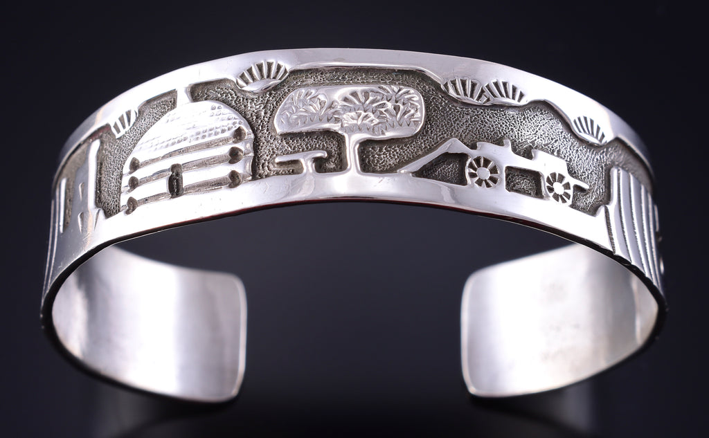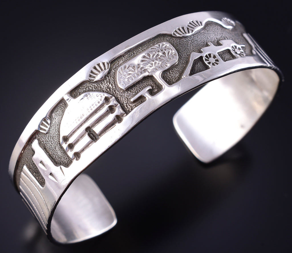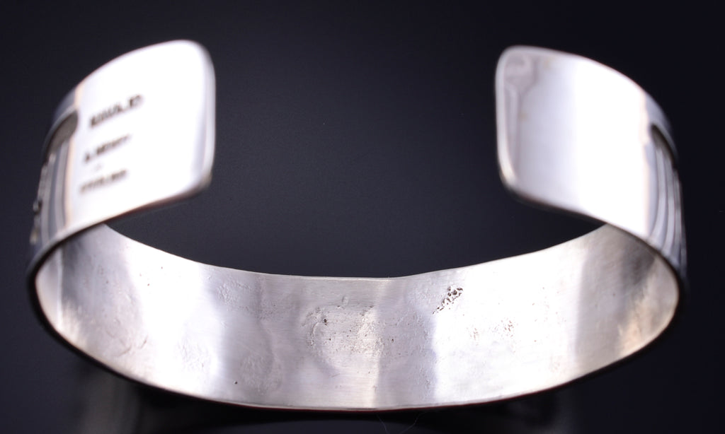 Vintage Silver Navajo Handmade Sacred Homeland Bracelet by Aroy Henry 5K10Z