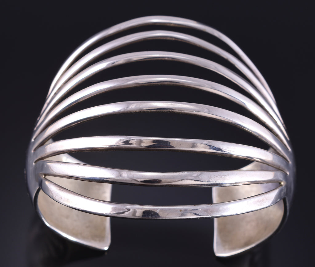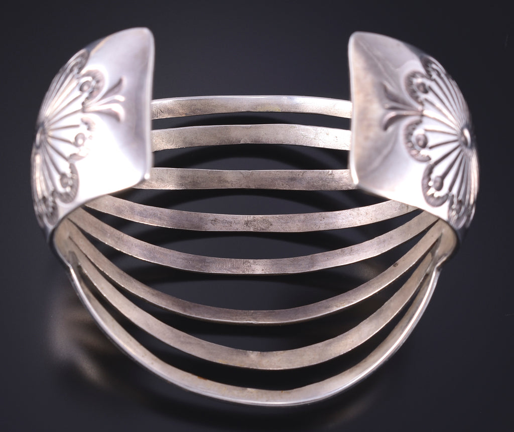 Vintage Silver Navajo Handmade Sunrise Bracelet by Wilbert Benally 5K10J