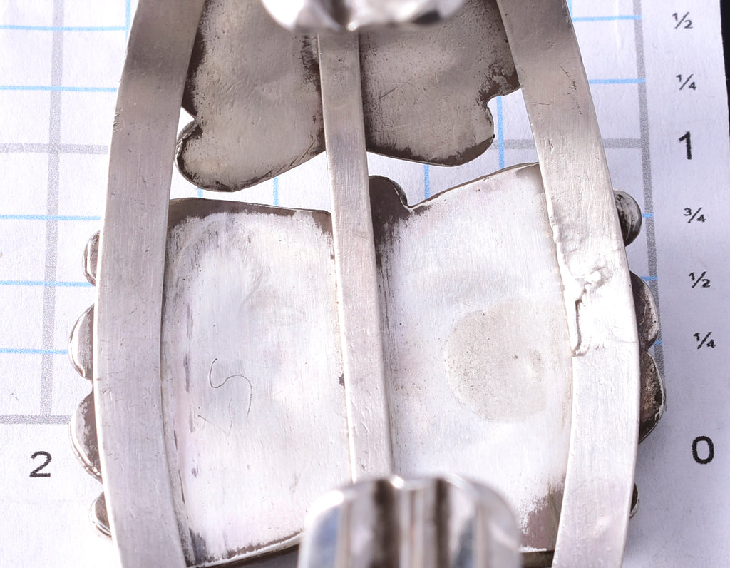 Dimensions: The inside of this bracelet measures 5-5/8" from end to end. The opening is 1-1/4" and the piece is 1-7/8" wide.