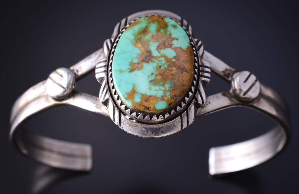 Vintage Silver & Turquoise Navajo Handmade Bracelet by Ed Kee 5K17L