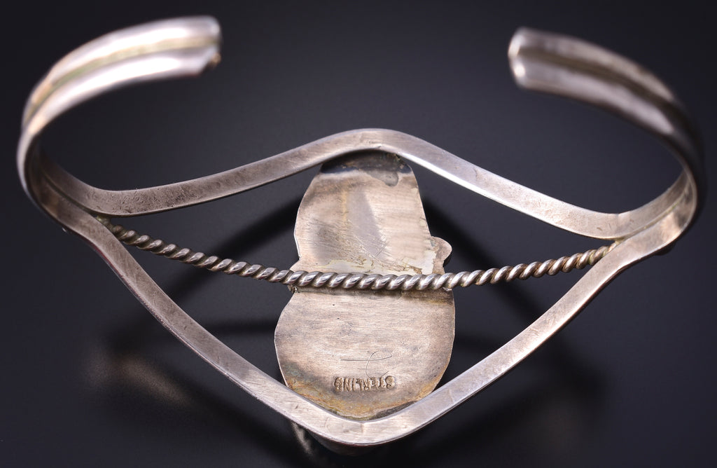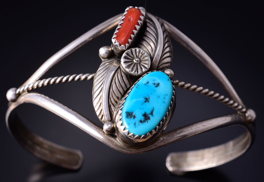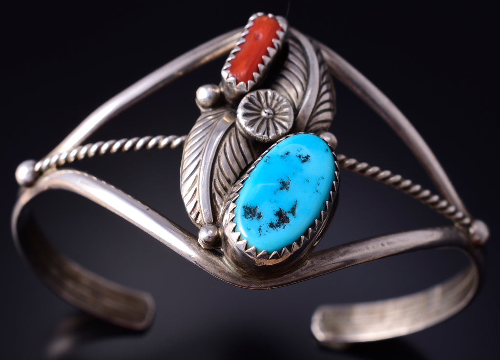 This piece is a stunning example of classic Navajo jewelry. This piece is handmade out of sterling silver and genuine stones.