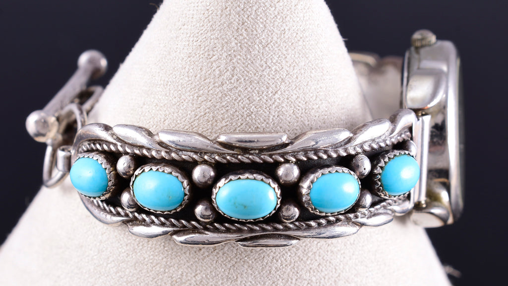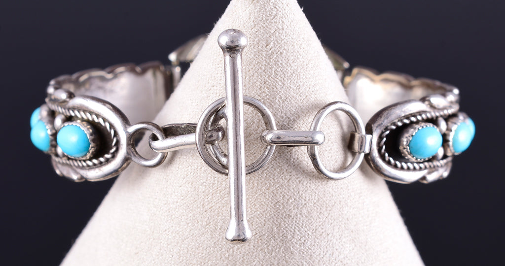 This piece is a stunning example of classic Navajo jewelry. This piece is handmade out of sterling silver and genuine stones.