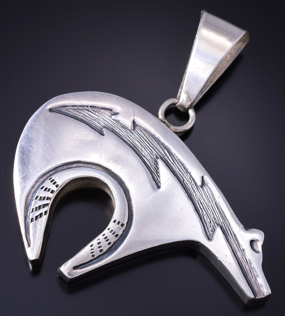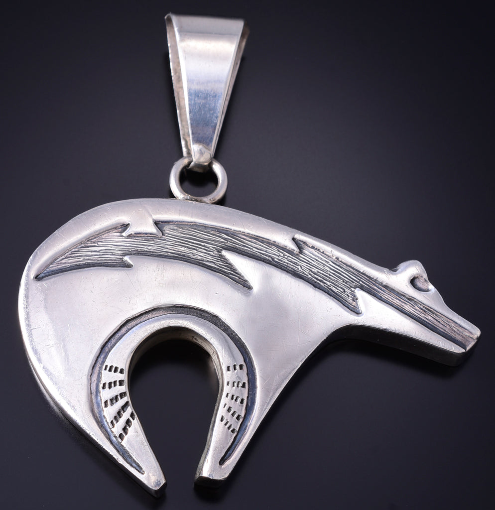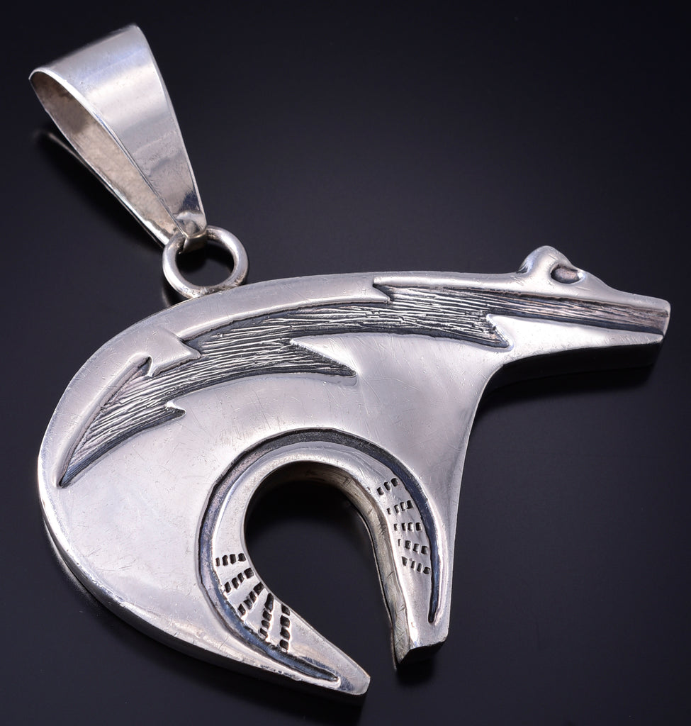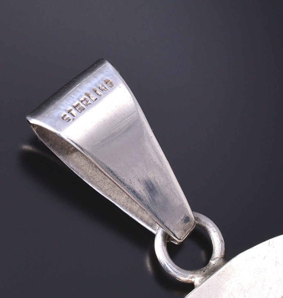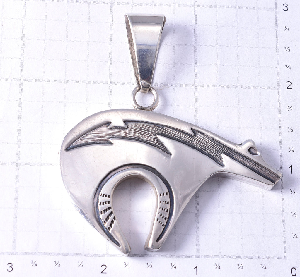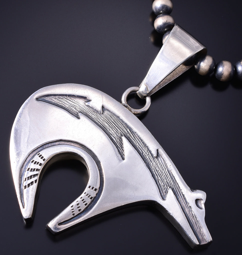 This piece is a stunning example of the artistry of the Navajo silversmith. Each piece is handmade out of sterling silver.