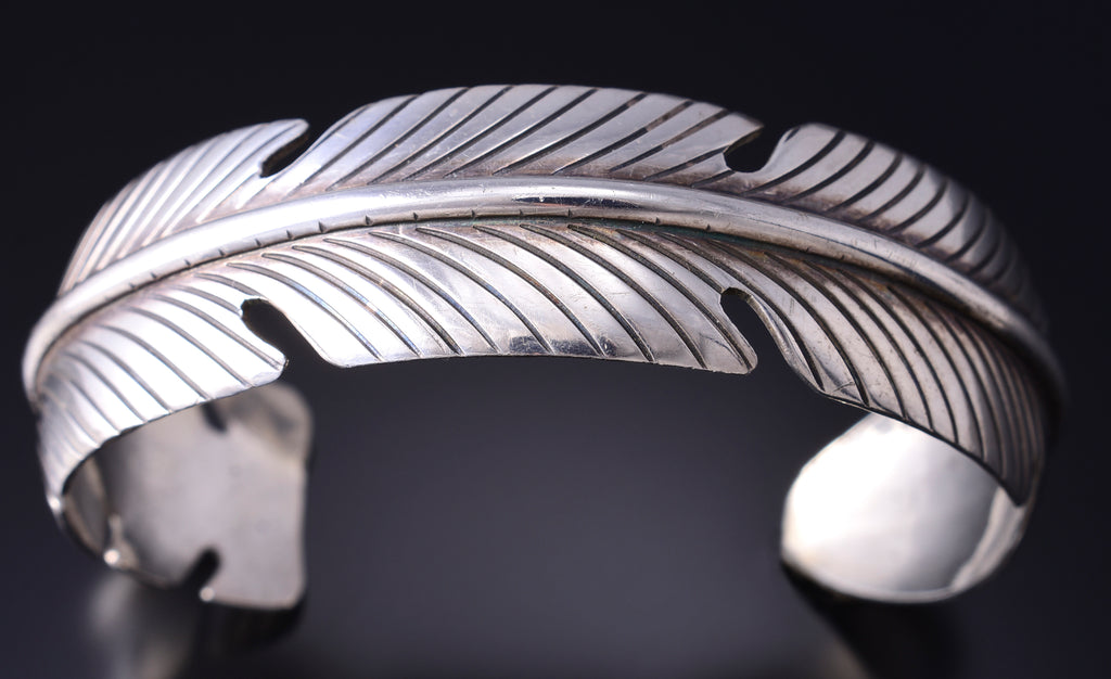This piece is a stunning example of the artistry of the Navajo silversmith. Each piece is handmade out of sterling silver.