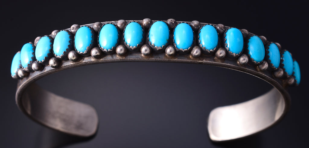 This piece is a stunning example of classic Navajo jewelry. This piece is handmade out of sterling silver and genuine stones.