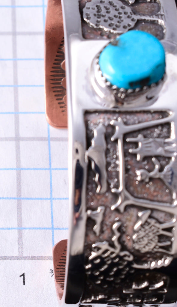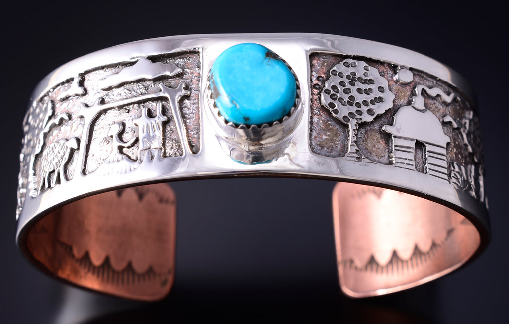 Silver & Turquoise Copper Lined Navajoland Beauty Bracelet by Ravis Henry 5L10B