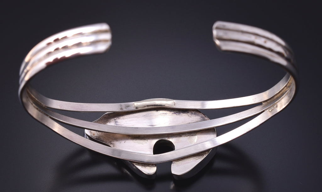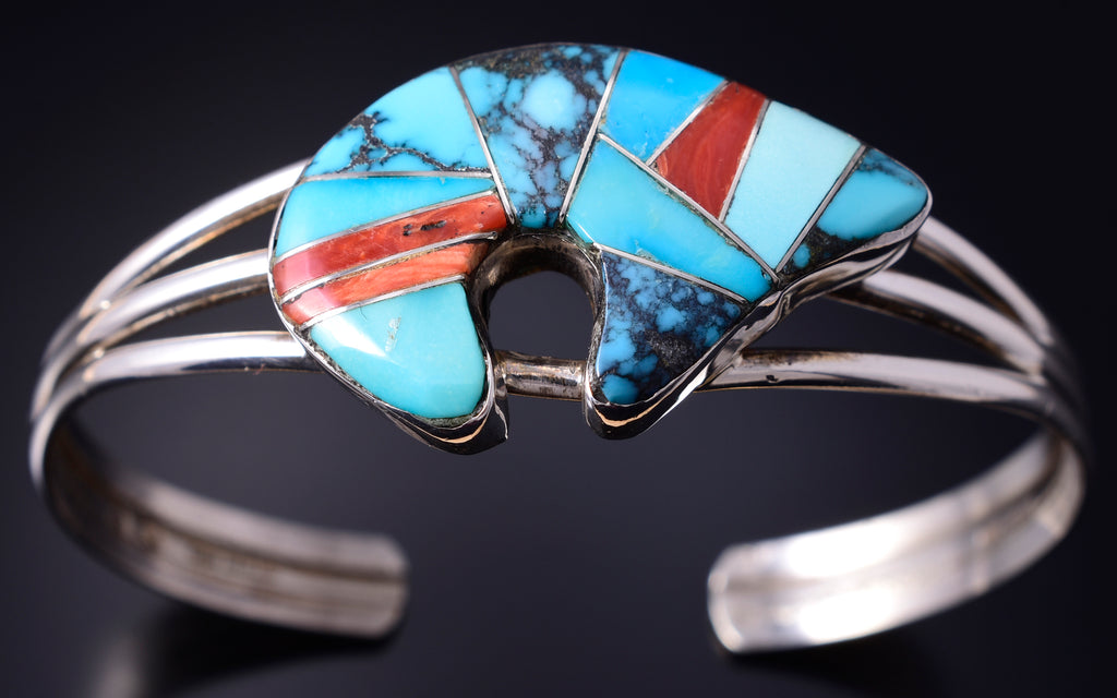 This piece is a stunning example of classic Navajo jewelry. This piece is handmade out of sterling silver and genuine stones.