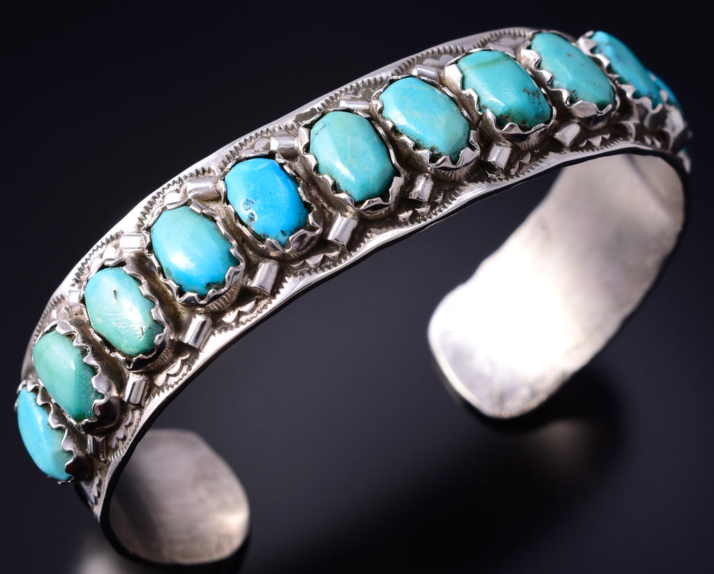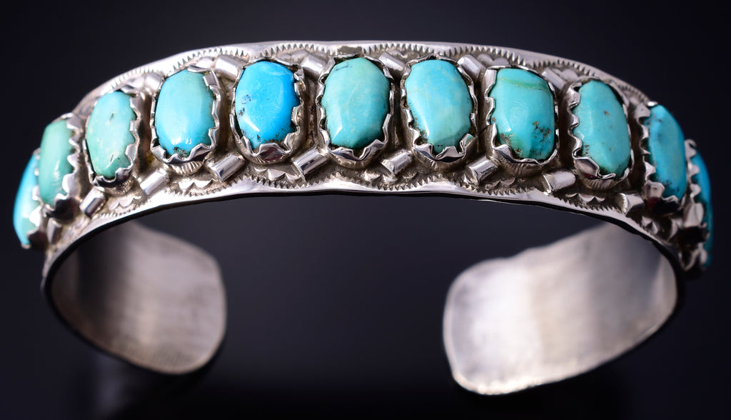 Vintage Silver & Turquoise Row Navajo Bracelet by Yazzie 5H25B
