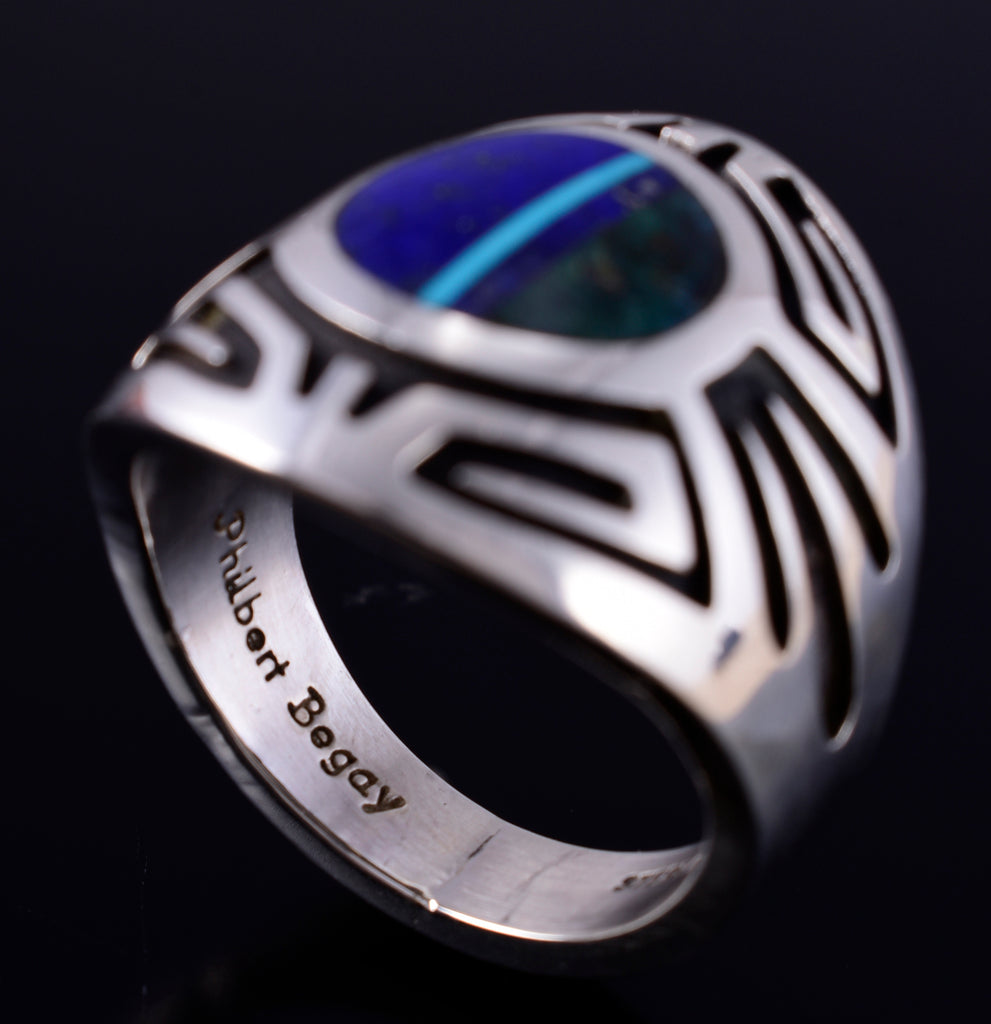 This piece is handmade by Navajo Artist, Philbert Begay. Philbert was fortunate to be surrounded by a family of talented artisans who shaped his artistic journey. His uncle Victor Beck, uncle Patrick Taylor, and James Little played a significant role in influencing his artistic style and creative spirit. However, it was his father, Richard Begay, who served as his ultimate inspiration and mentor.
