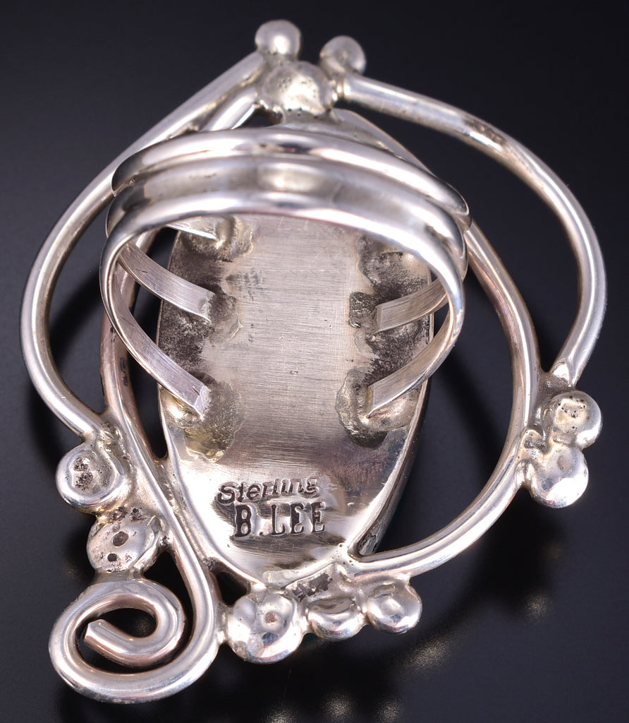 Material: Sterling Silver, Turquoise Dimensions: Size 6. Ring's face is 1-5/8" long. Weight (in grams): 11.2 Hallmark/Signature: B. Lee, Sterling This piece is a stunning example of classic Navajo jewelry. This piece is handmade out of sterling silver and genuine stones.