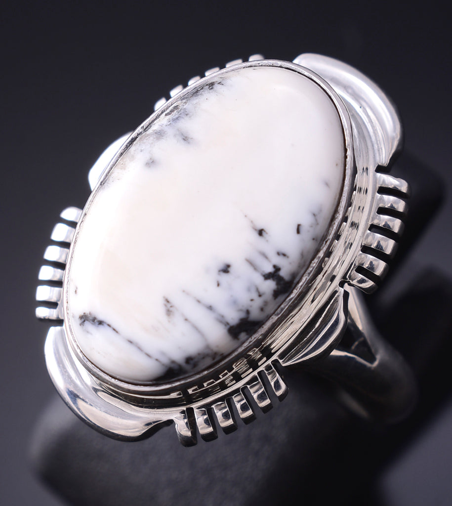 Size 6 Silver & White Buffalo Turquoise Navajo Ring by Linda Yazzie 5L10M