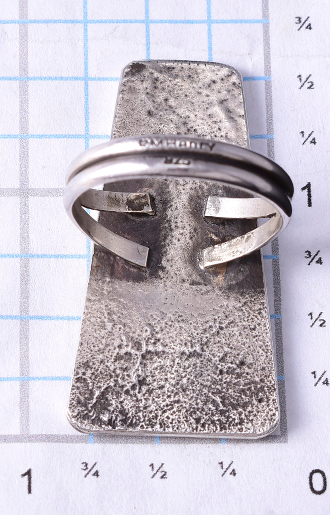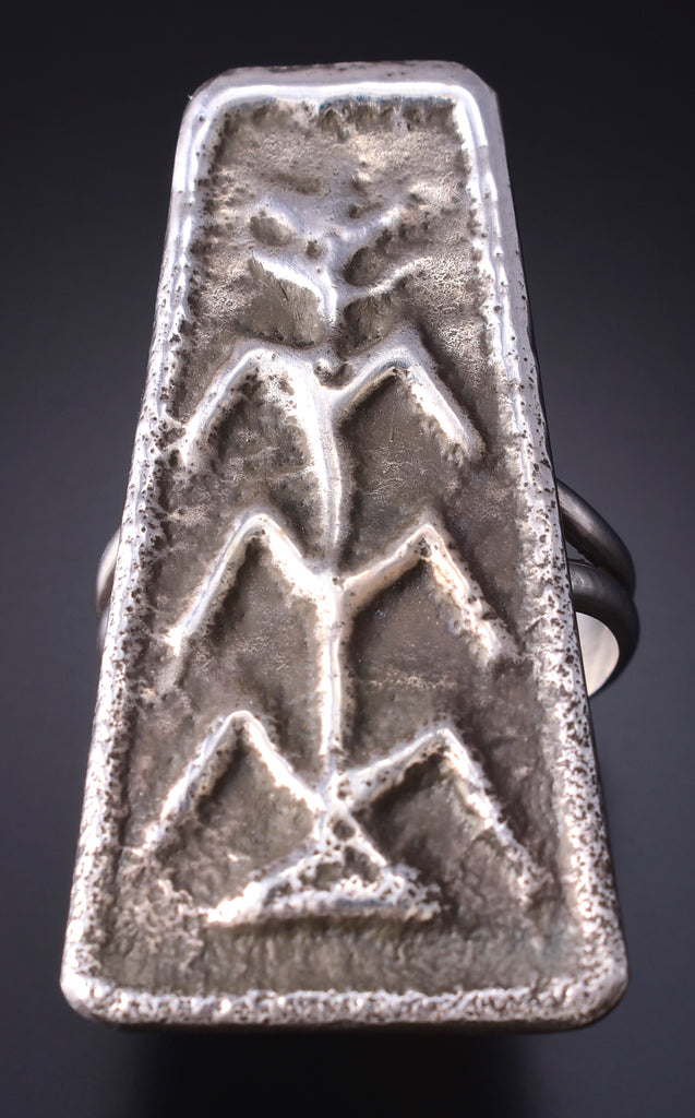 Size 9-1/2 Silver Navajo Tufacast "The Tree of Life" Long Ring Ravis Henry 5L10E